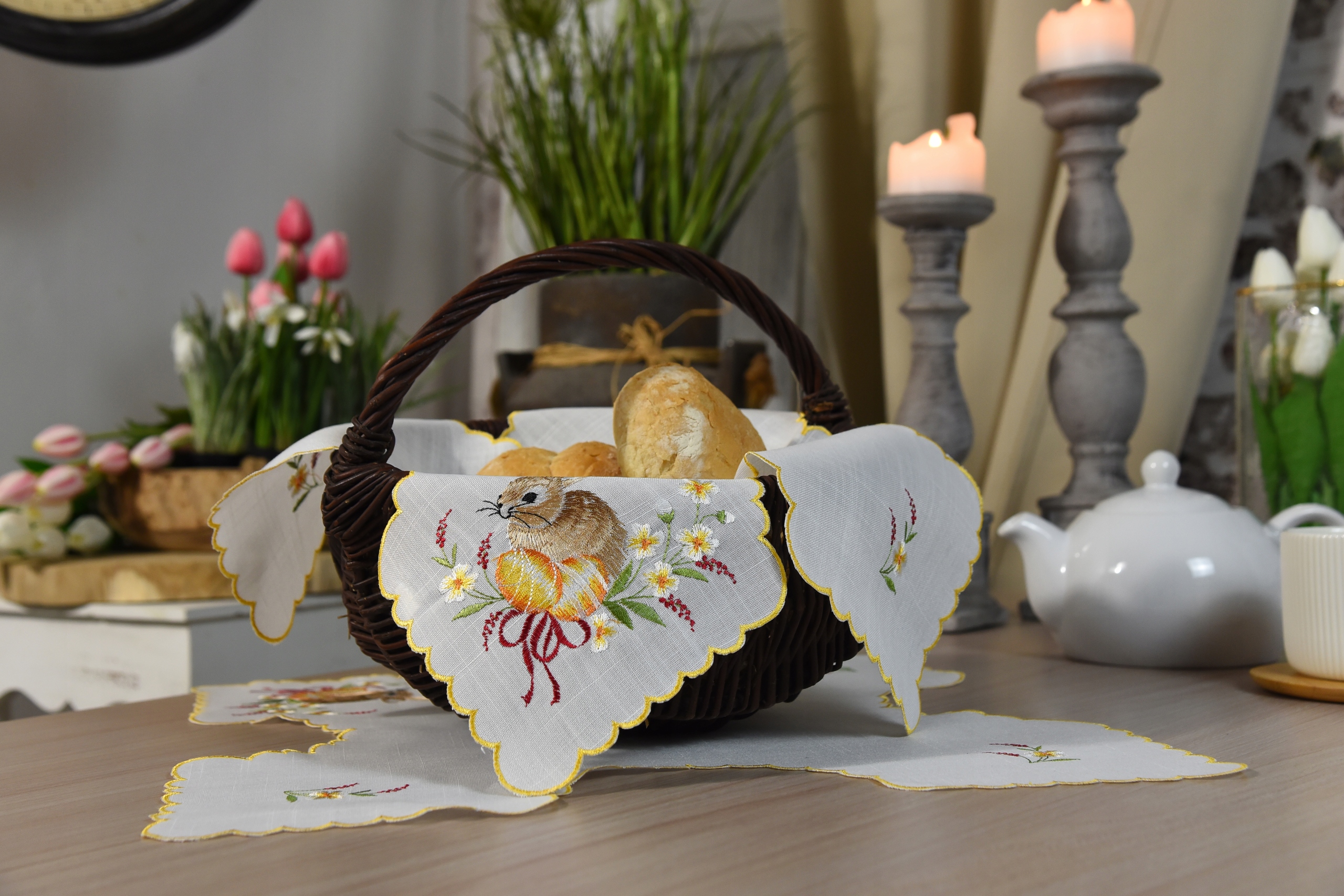 Вишита хлібна серветка, кошик для зайця 45x45 см