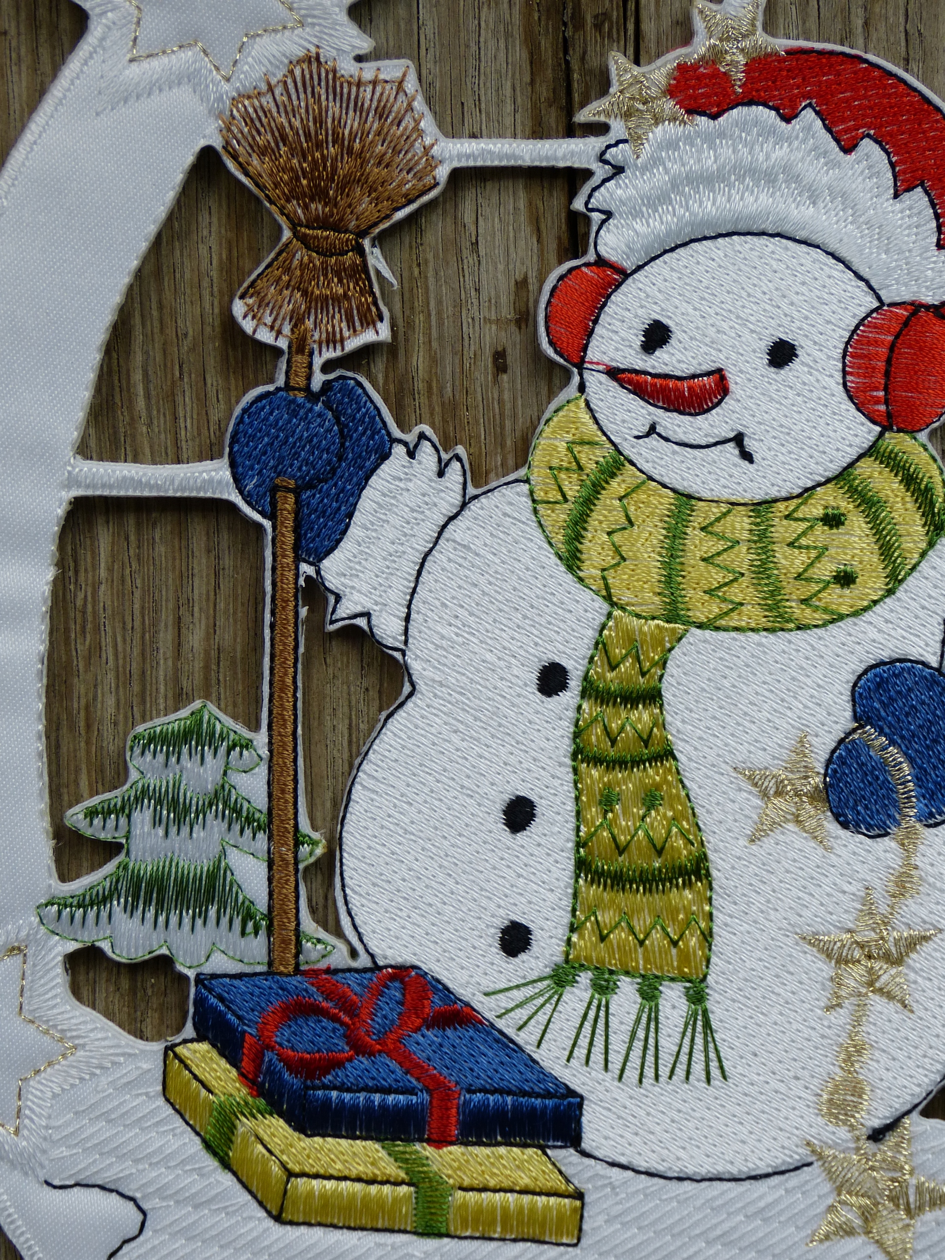 Вишитий кулон у вікно сніговик 27 см подарунок