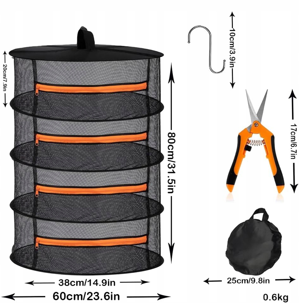 Завдяки незалежним блискавкою на будь -якому шарі ви можете легко сортувати та організувати сушені продукти. Помаранчевий замок простий у використанні, і сітка захищає рослини від сильного вітру та проникнення дрібних тварин та птахів, забезпечуючи безпечне висихання.
