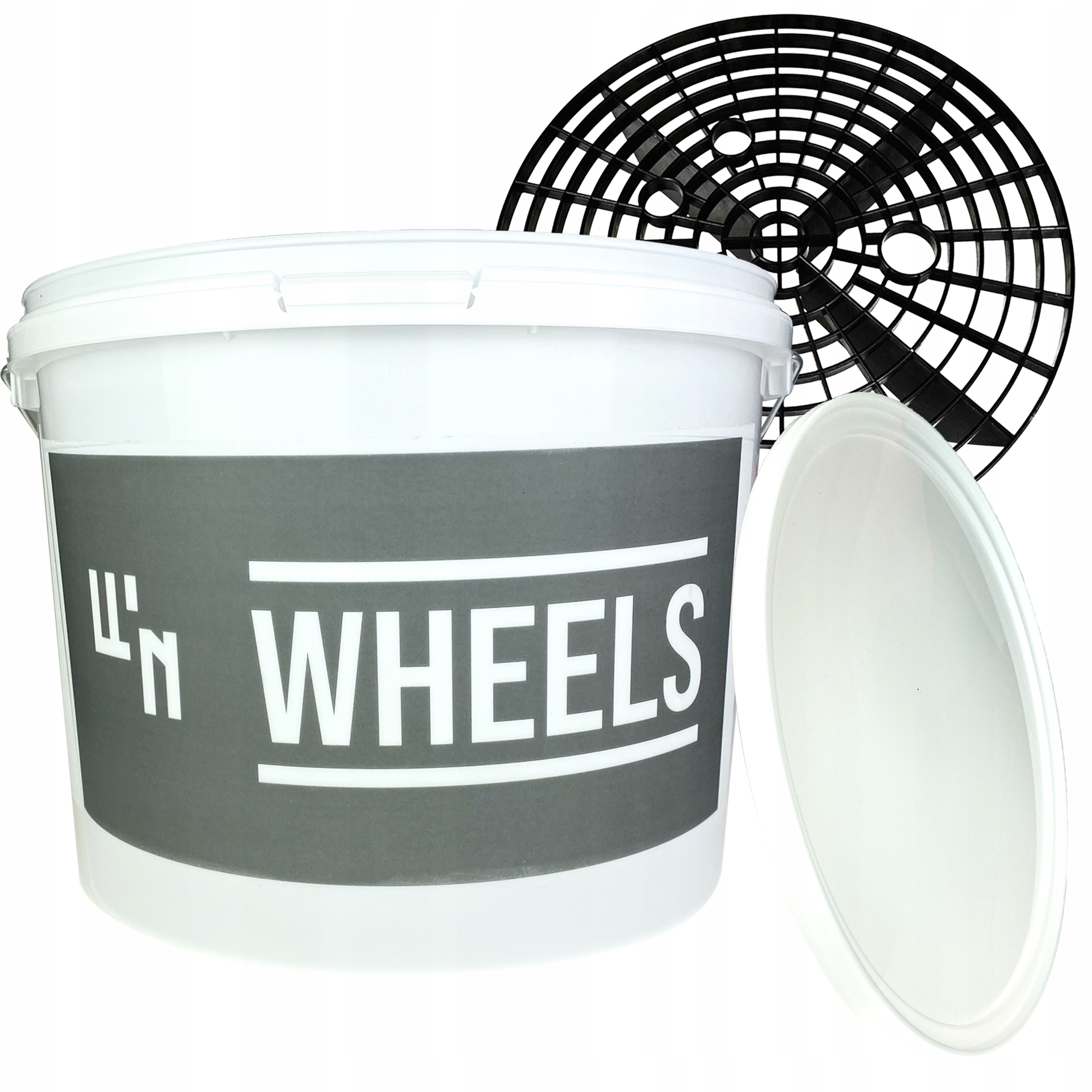 Відро WHEELS призначене для миття дисків. Він виготовлений з міцного пластику. Він має металеву ручку з ергономічною пластиковою ручкою.
