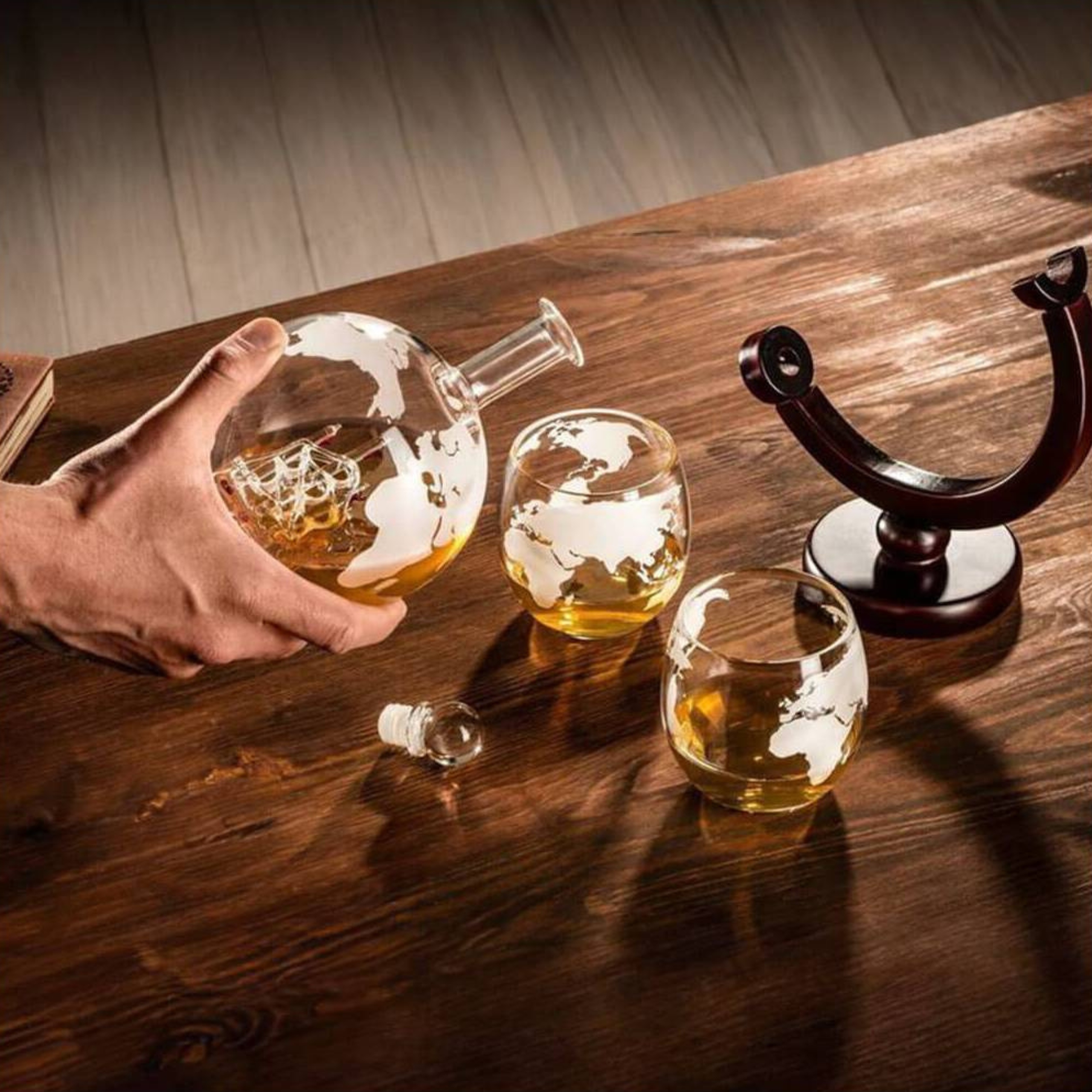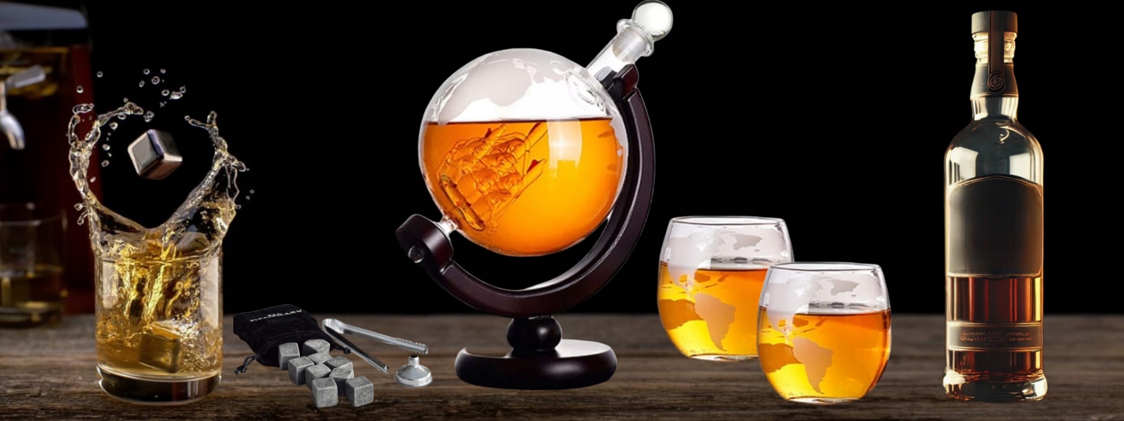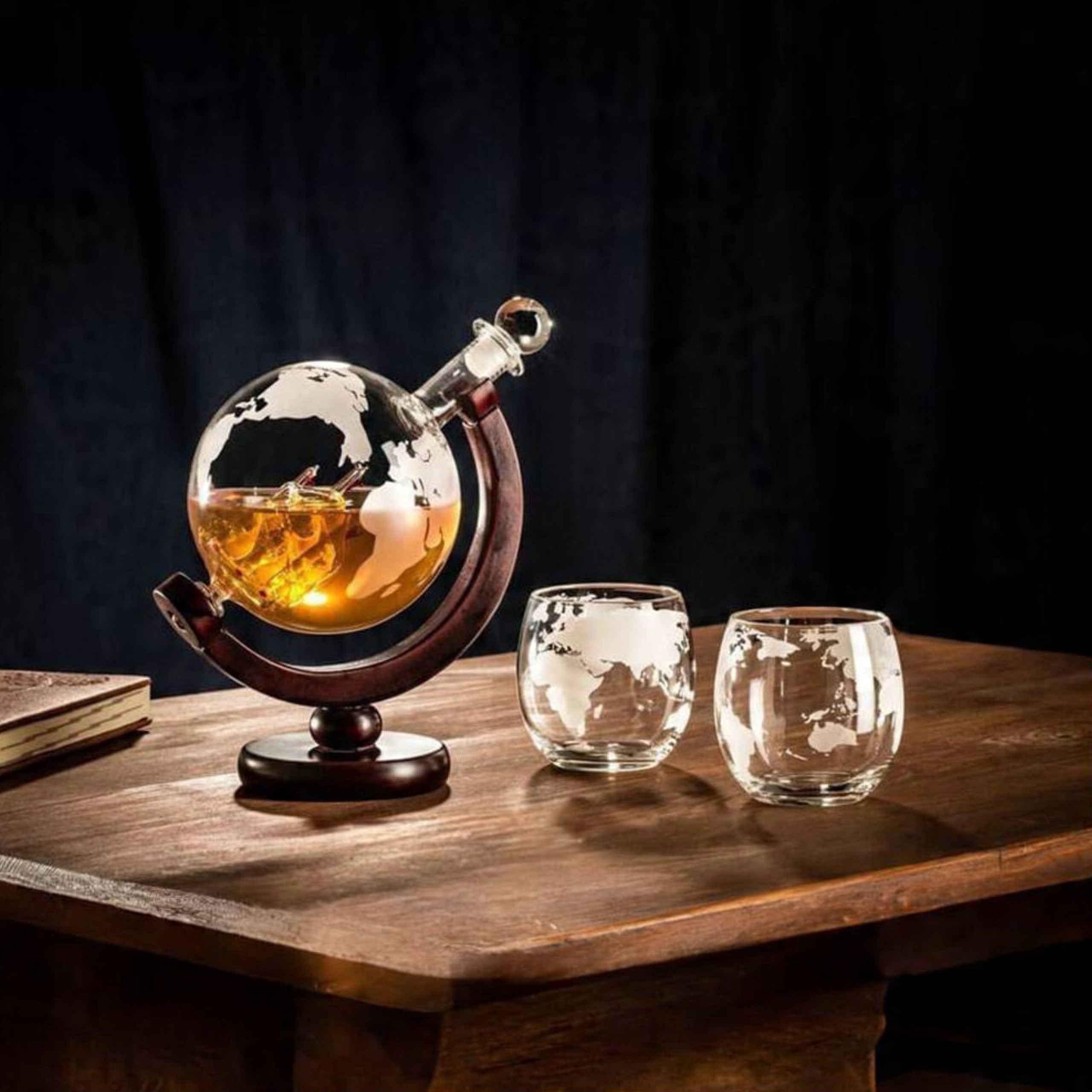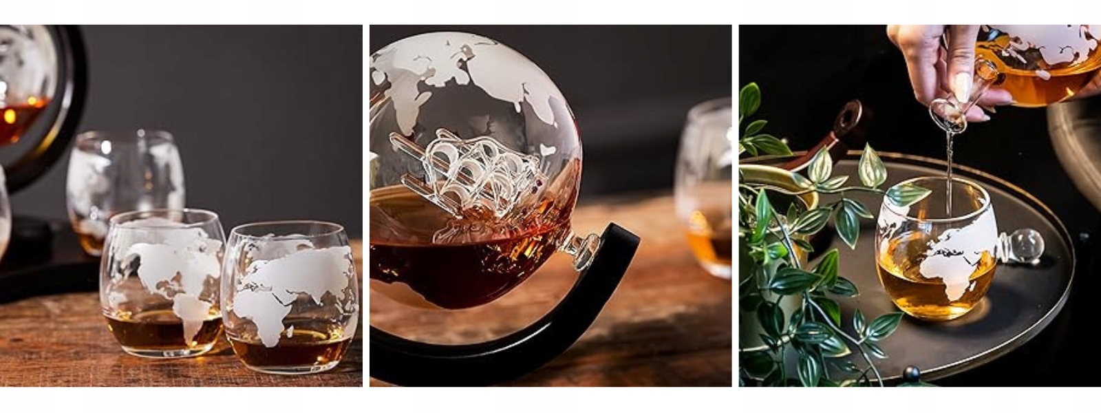 ✅ глобус -набір -це унікальний спосіб елегантного адміністрації алкоголю. Збагачений дерев’яною підставкою та двома окулярами, набір зробить кожну мить з віскі унікальним.