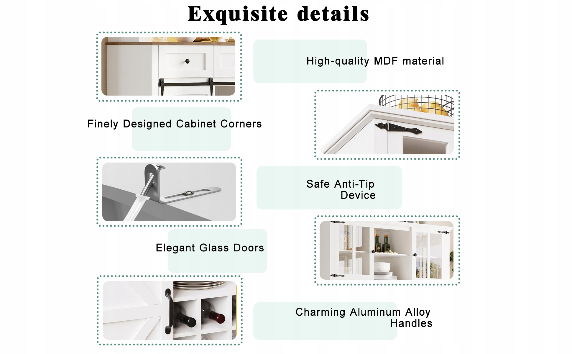 - Розсувні двері, що імітують сарай, тверді та довговічні, ідеально відповідають різним стилям інтер'єру. Ідеально підходить для зберігання вина, книг чи прикрас.