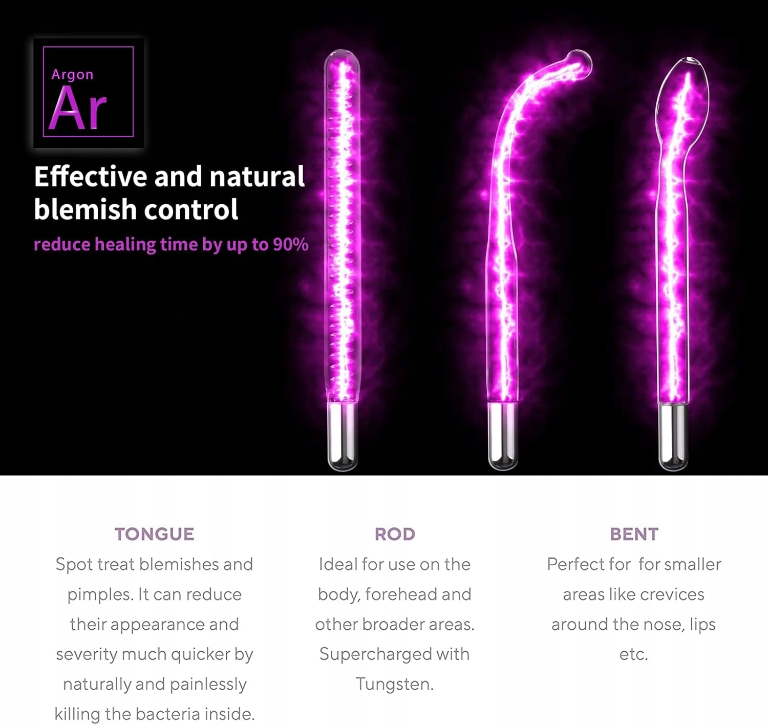 ✅ аргонові електроди - з фіолетовим світінням, традиційно використовуються в точкових і локальних процедурах (наприклад, вибрані частини обличчя)