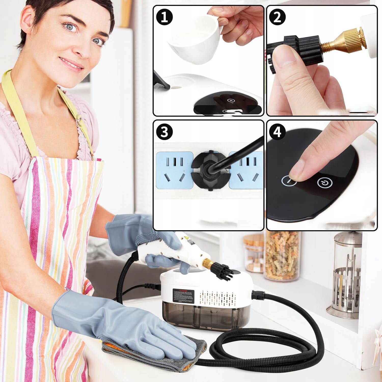 ⭐[Швидке нагрівання]: генерує пару до 105℃ (221℉) за 15 секунд, що ефективно видаляє стійкі жирні плями та бруд. Завдяки високому тиску пари до 3 бар очищення стає швидшим і ефективнішим.