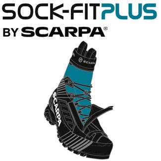 Sock-Fit Plus – запатентований брендом Scarpa дизайн верху, який містить спеціальне конструктивне рішення, яке забезпечує ногам максимальний рівень комфорту. Таке рішення полягає у використанні елемента, який одночасно виконує роль язика і снігозахисту. Така конструкція забезпечує захист від надмірного тиску, який може спричинити потертості та синці, а також запобігає потраплянню бруду, снігу та камінців під матеріал. Крім того, дизайн Sock-Fit Plus дозволяє дуже швидко одягати та знімати взуття. Тому він гарантує все необхідне в найважчих умовах.