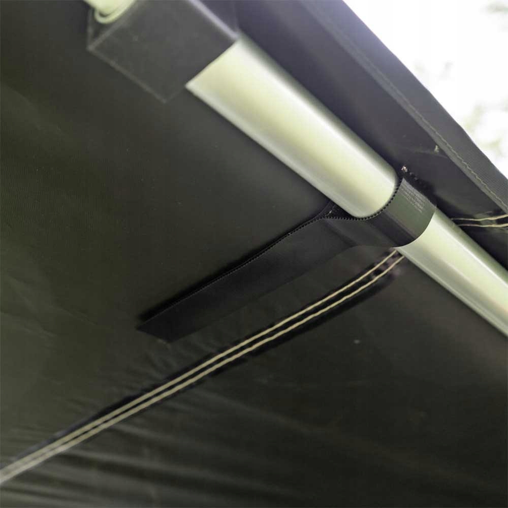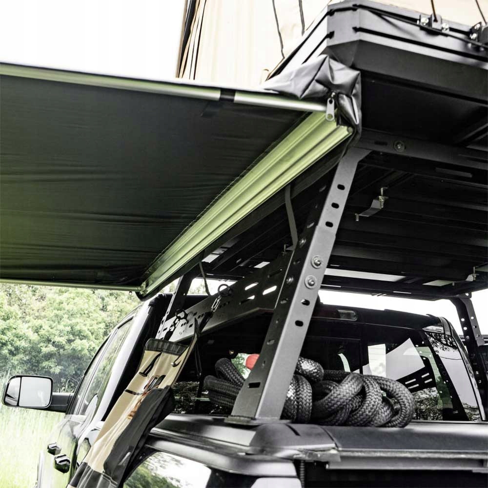 , виготовлений з довговічного поліестеру 420d, цей тент витримає найважчі умови 4x4 . Колір хакі не тільки додає привабливий вигляд, але й ефективно приховує бруд, забезпечуючи чистий та естетичний вигляд справжньої поїздки. 4 Оснастіть свій автомобіль Off -Road висувним бічним маркізом і насолоджуйтесь спокійним кепінгом у свіжому повітрі завдяки надійному захисту та комфорту.
