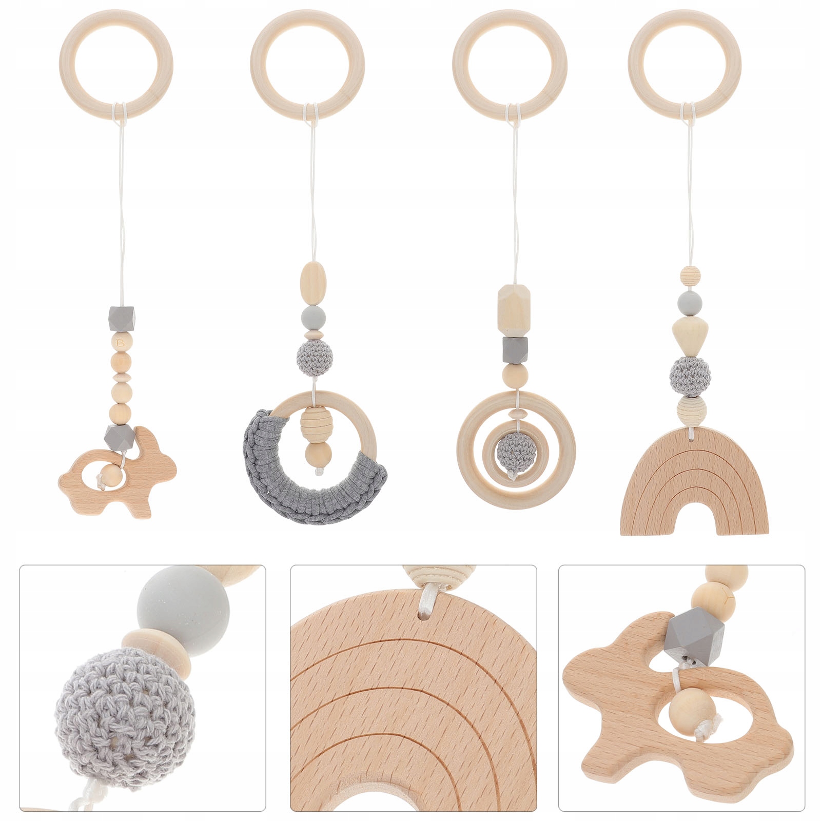✅ Гімнастичні іграшки для дітей, виготовлених з дерев’яних матеріалів, є ідеальним доповненням до ліжечка, дитячої коляски та дому. Їх можна легко призупинити з низькою вагою і може принести дітям набагато більше радості. У делікатній формі та приємному кольорі це може краще залучити їх до гри і дозволити їм щасливішим настроєм.