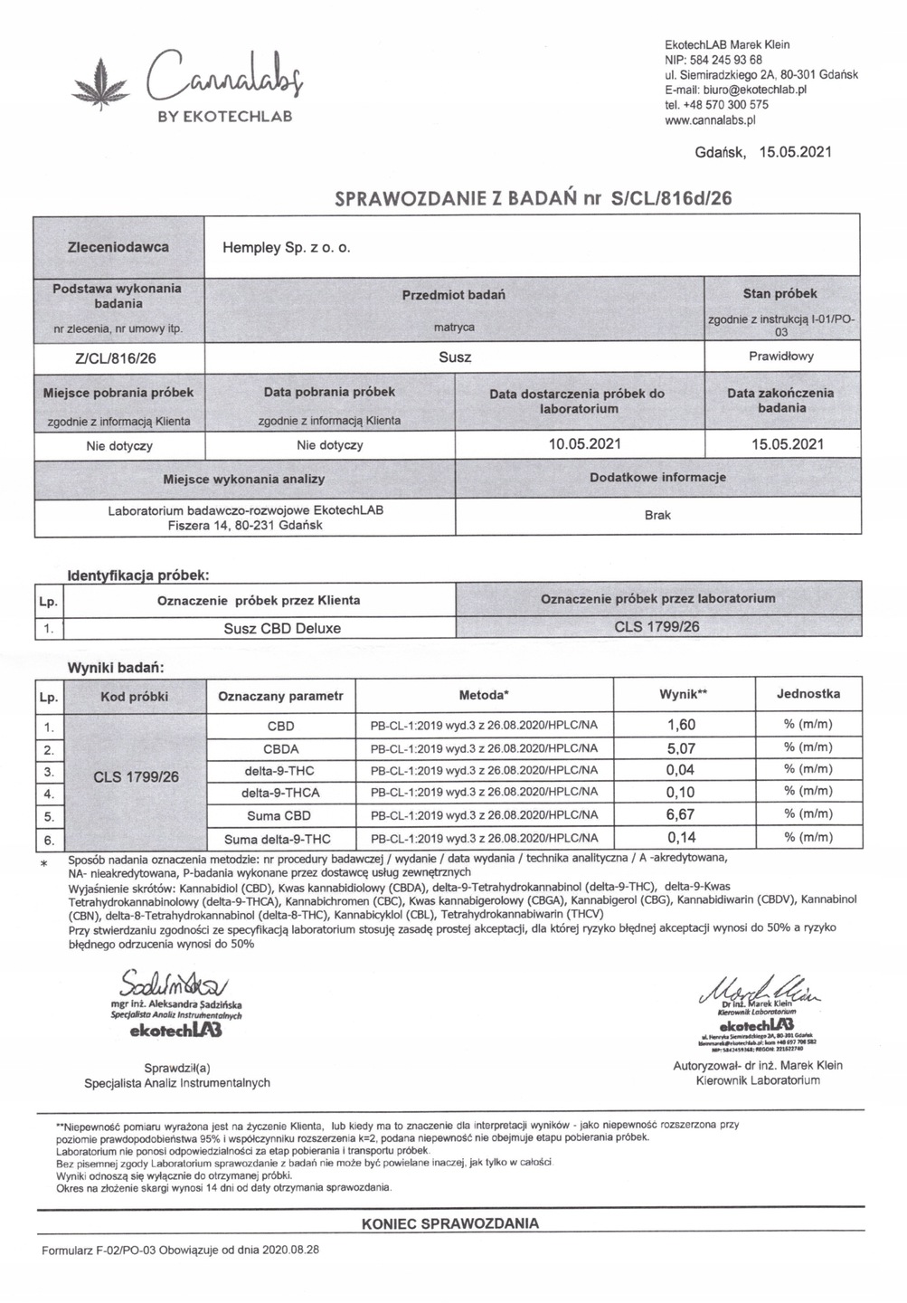 - Вміст CBD+CBDA: 4,88%, THC: <0,2%. < /ul>