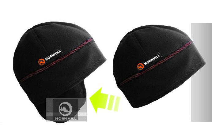 Верх шапки виготовлений з мембрани, а «вушка» з тонкого мікрофлісу (140г/м). «Вушка» пришиті таким чином, щоб їх можна було заховати всередину шапки / обидва варіанти представлені на фото нижче /.
