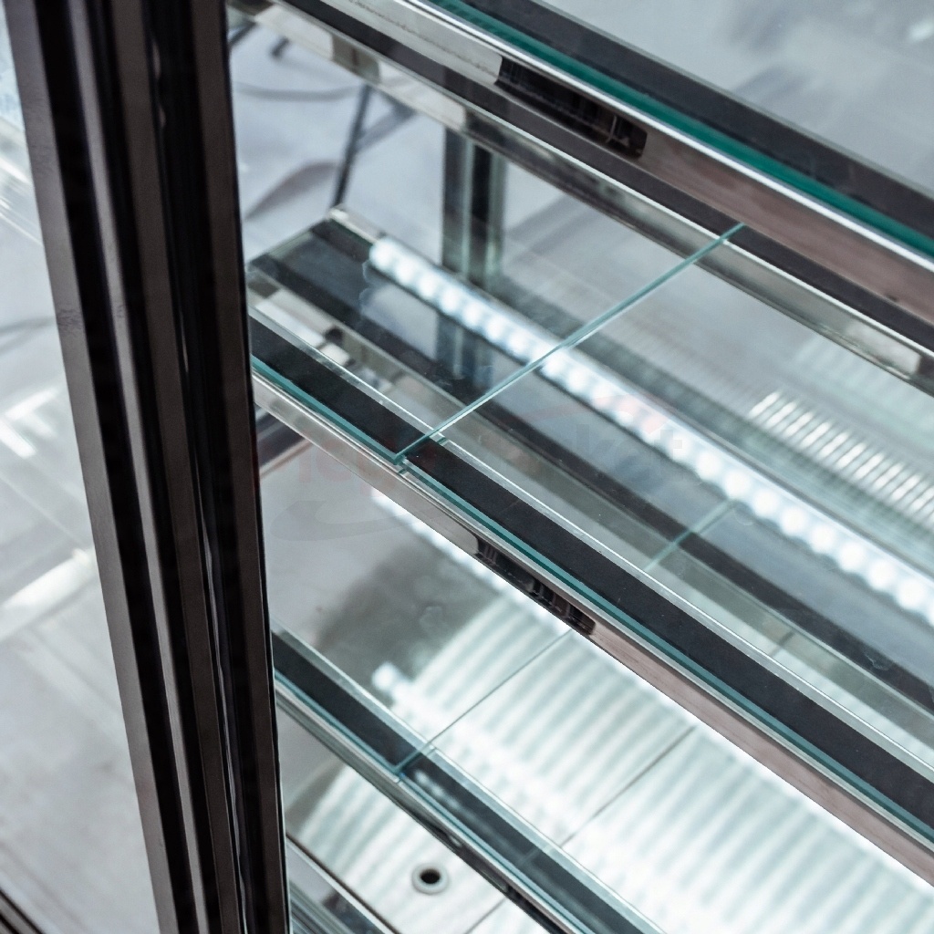 - Вітрина має подвійне скло з підігрівом, яке запобігає запотіванню.