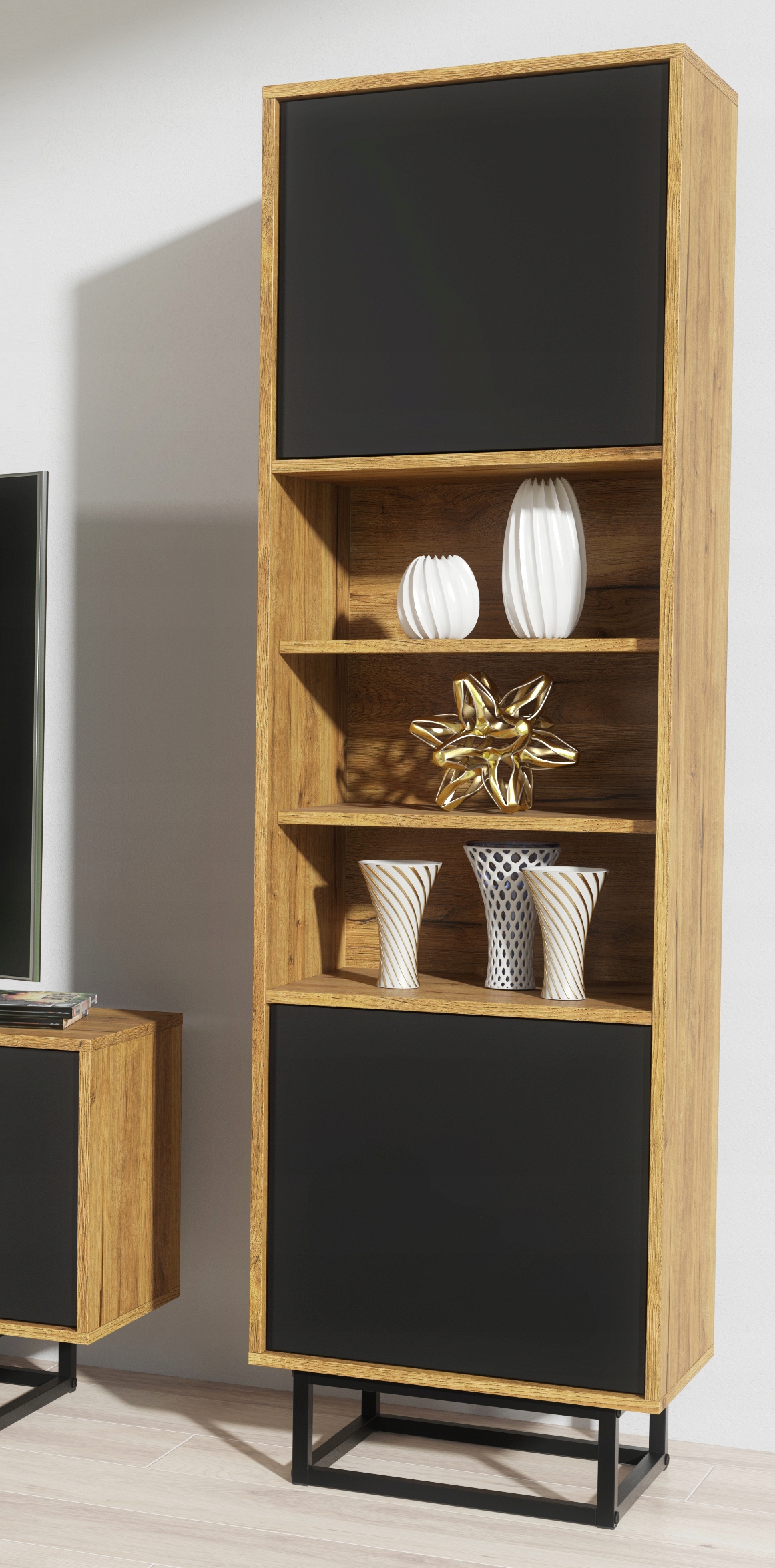 - Корпус дуб натуральний матовий/Дверцята чорні матові.