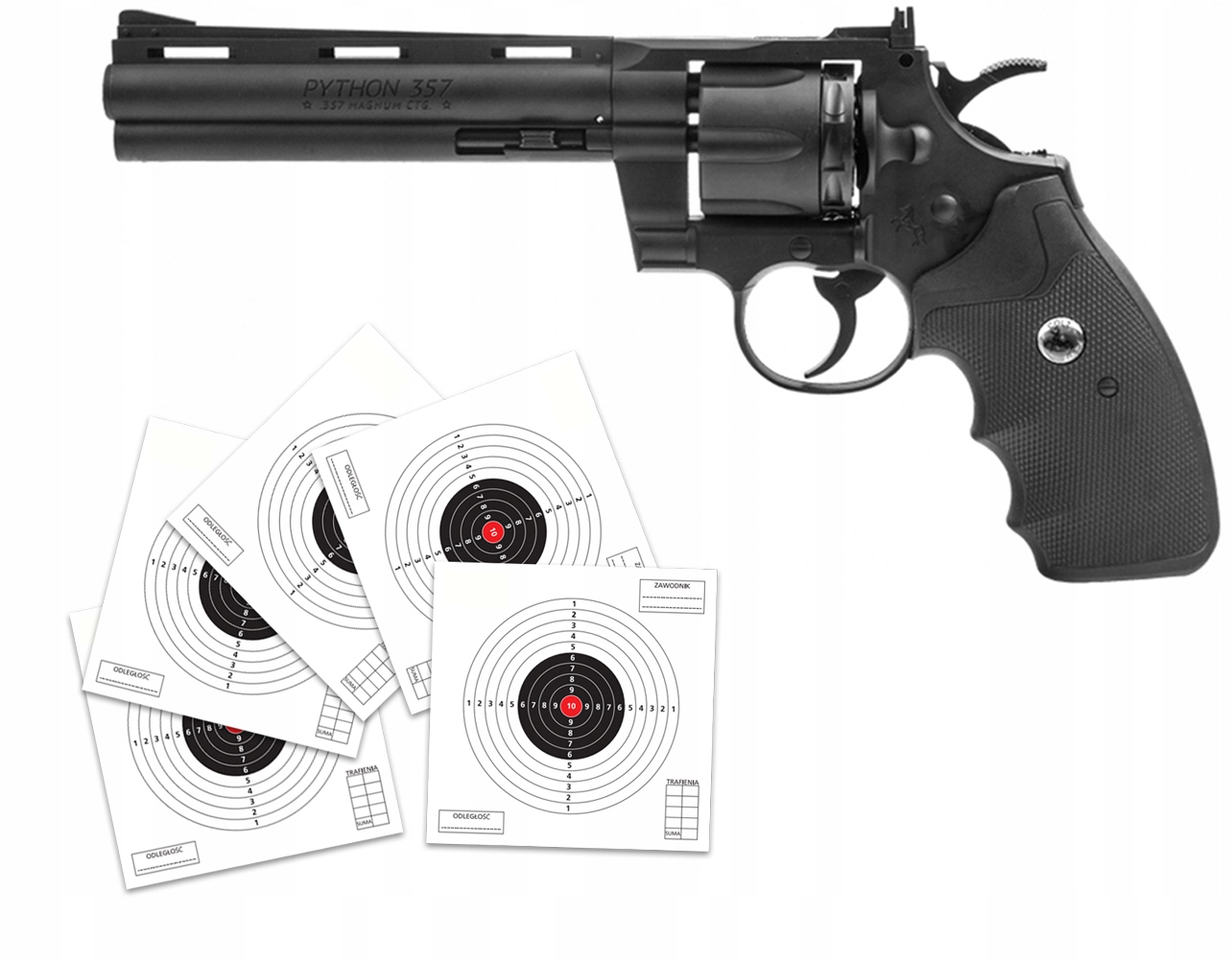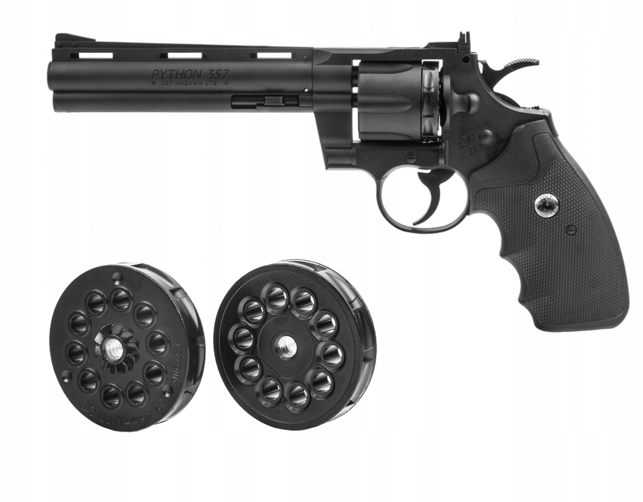 Це пневматична копія культового револьвера .357 Magnum, що працює від капсули CO2, що дозволяє стріляти кульками Diabolo та BB. .
