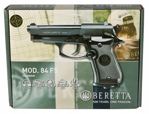 Beretta M84 FS 4.5 mm BB CO2це акуратна і компактна пневматична зброя з металу. Оснащений противідкатною системою затвора Blow-Back, ударно-спусковим механізмом DA, двостороннім запобіжником і містким магазином на 17 куль. p>