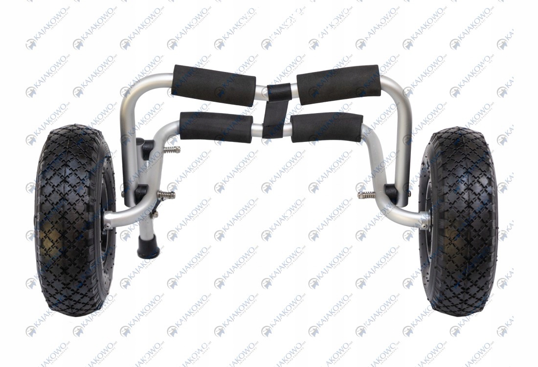 Швидкий і простий спосіб перевезення вашого байдарки. Великі надувні колеса істотно полегшать транспортування в складних умовах. Універсальна коляска, яка підходить для більшості моделей туристичних каяків.