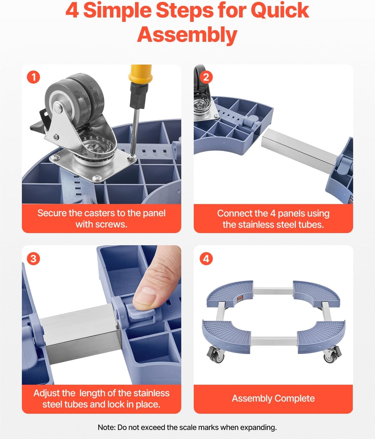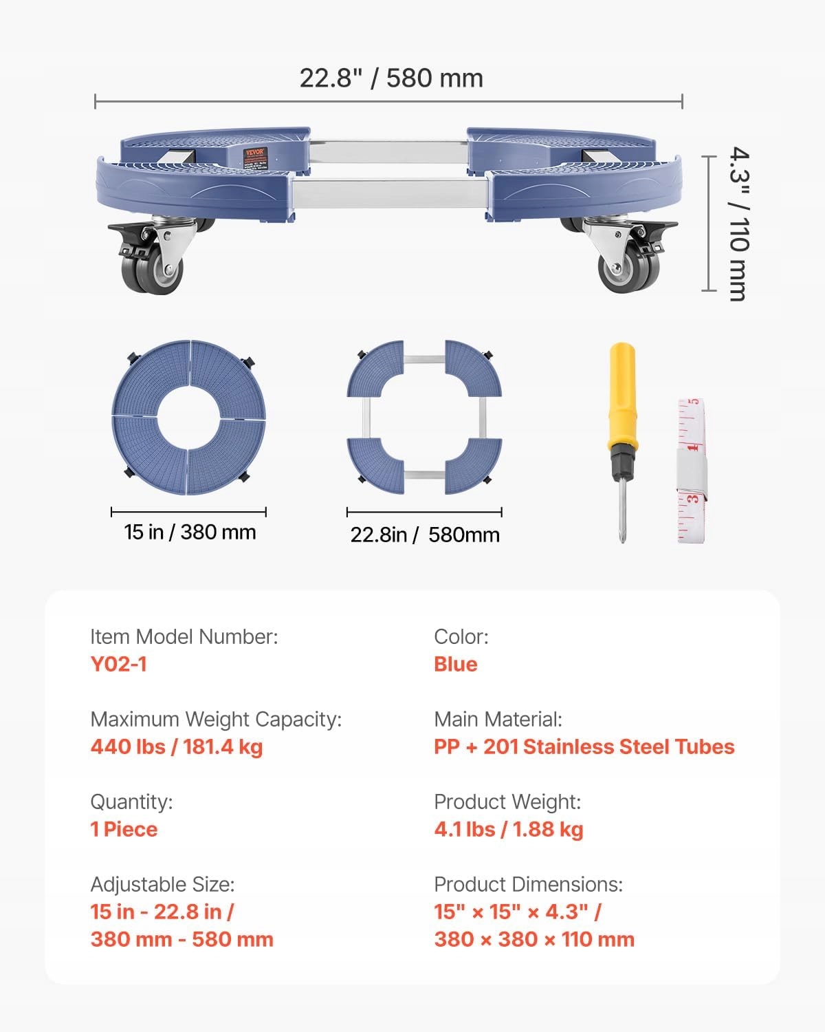 Візок для сміття, виготовлений із стійкої до подряпин поліпропіленової дошки та міцної рами, легко транспортує великі рослини в горщиках. Оснащений 4 поворотними коліщатками, які замикаються, для плавного переміщення та не пошкоджують підлогу. Регулюється від 15" до 22,8" із 6 налаштуваннями висоти. Ударостійкі базові блоки запобігають перекиданню.