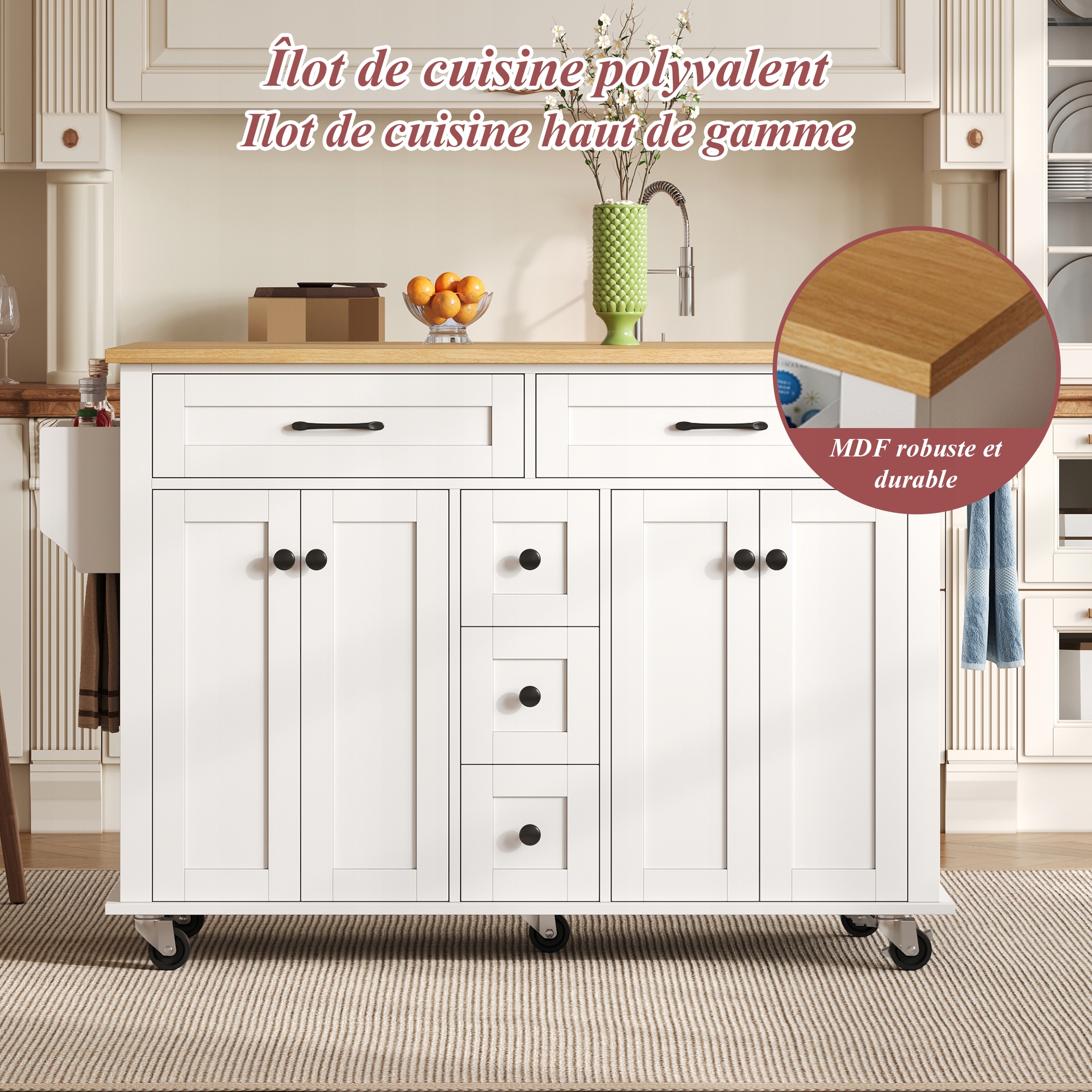 - ✅Велика розсувна робоча поверхня: тверду стільницю (товщиною 18 мм) можна збільшити від 120 x 40 см до просторих 120 x 65 см завдяки складній бічній панелі — ідеальне рішення для приготування їжі, приготування та сервірування.