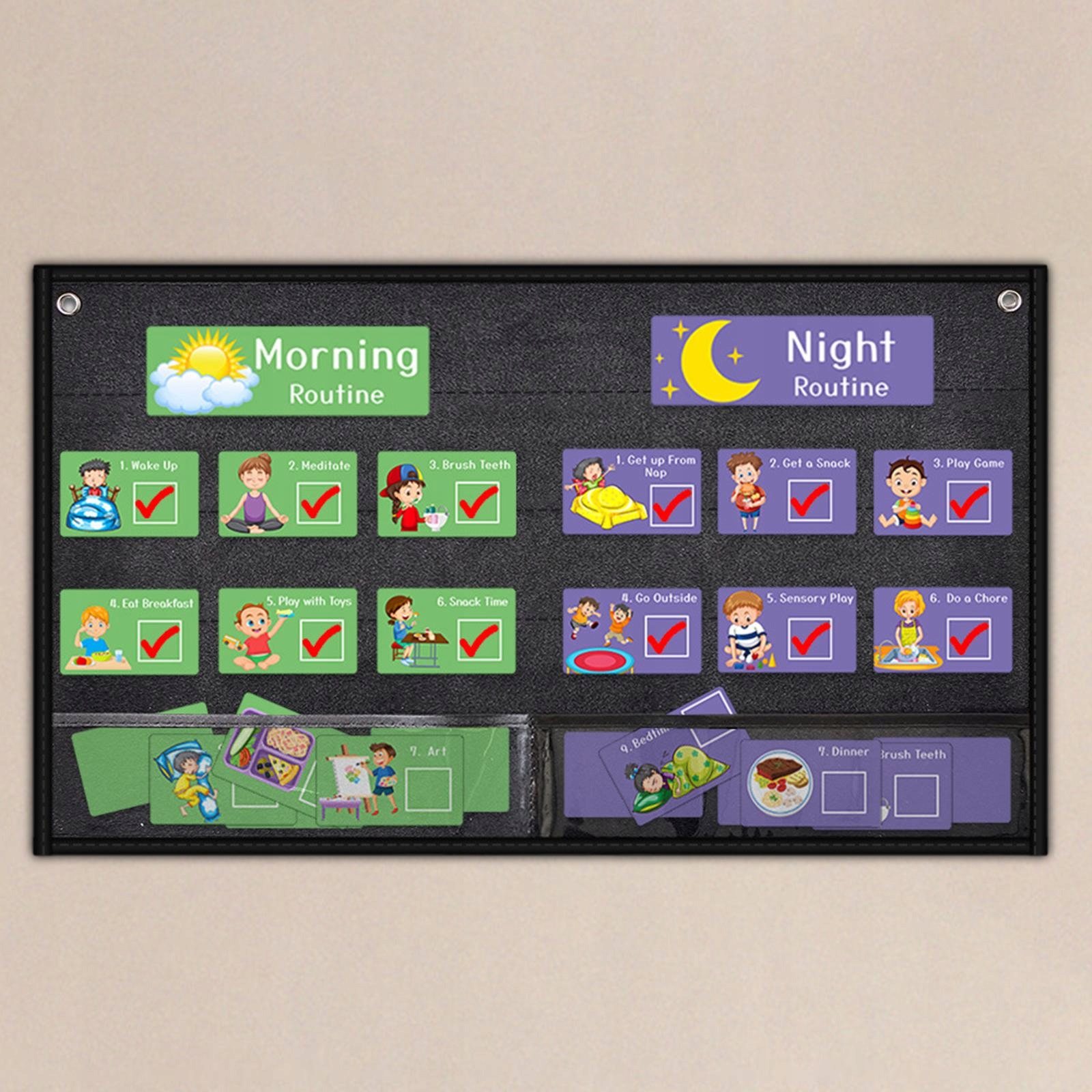 [Візуальний графік занять]: Цей щоденний графік для дітей підходить для використання вдома та в школі. Це допомагає дітям підготувати списки щоденних завдань та полегшує їх своєчасну продуктивність. Ви можете зберегти свої завдання на порожніх картках і вибрати карту, щоб вказати на виконання кожного завдання. Бруд і споживання.