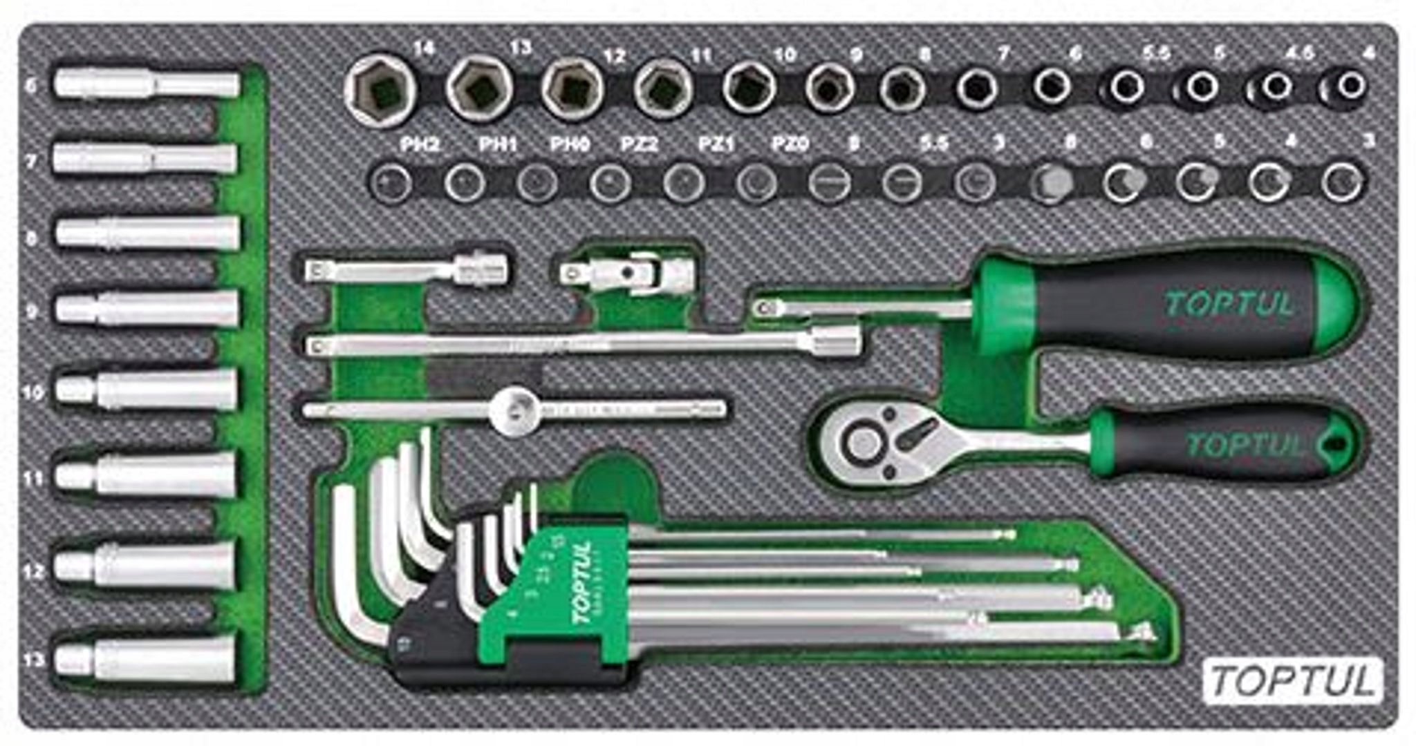ТОПТУЛ ВСТАВКА (ПІНА) ДЛЯ КОЛЯСКИ З НАБОРОМ 50 ШТ. 1/4 ІНСТРУМЕНТИ: ХРАПОВИК, ПОДОВЖУВАЧІ, РУЧКА, ГНІЗДА, L-КЛЮЧІ