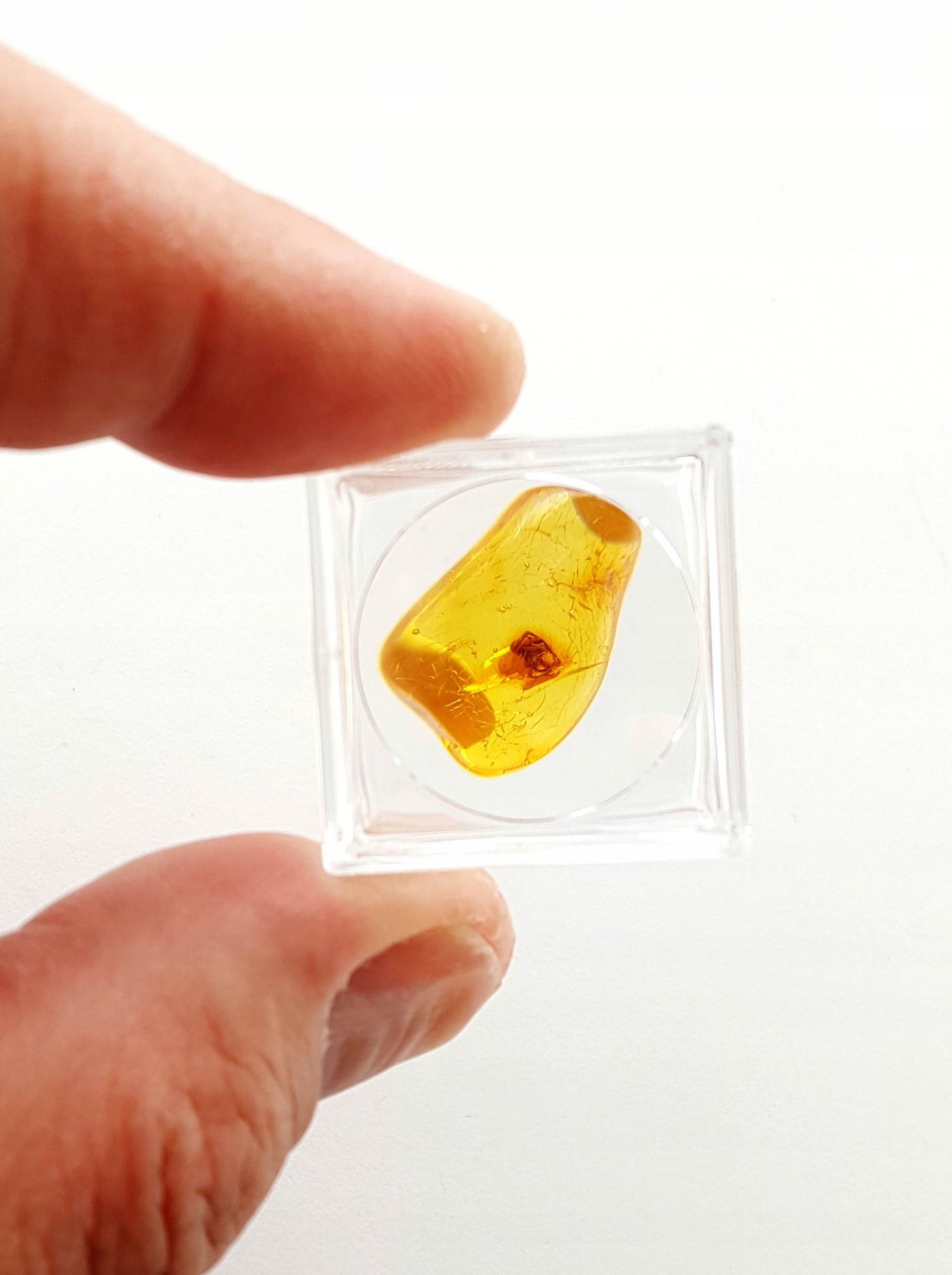 Шматок бурштину було вирізано та відполіровано вручну (а не машиною) , що підкреслює його унікальність. Бурштин можна купити скрізь, але бурштин з включеннями зустрічається рідко.