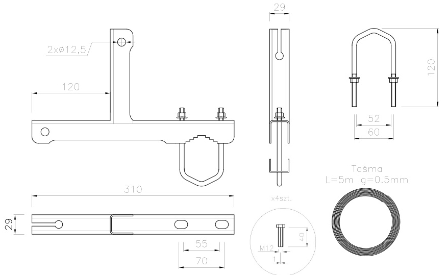 - Відстань між кріпильними точками кріплення ("t" секціями) не повинна перевищувати 10 діаметрів щогли