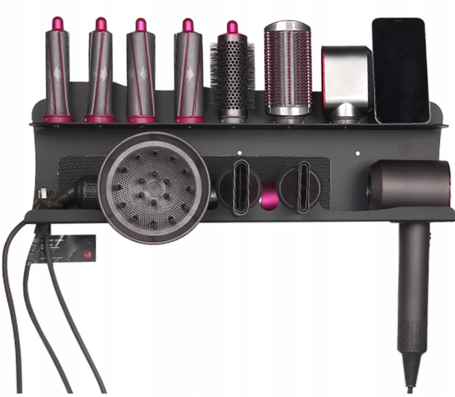 Ця сумісна стійка для сушарки Dyson ідеально підходить для Dyson Airwrap та Dyson Supersonic. Верхній лоток може вмістити бігуді/випрямлячі, мобільні телефони та інші аксесуари. Нижня частина магнетично і впевнено утримує дифузор і форсунки. (Фен Дайсона та всі аксесуари не включені).