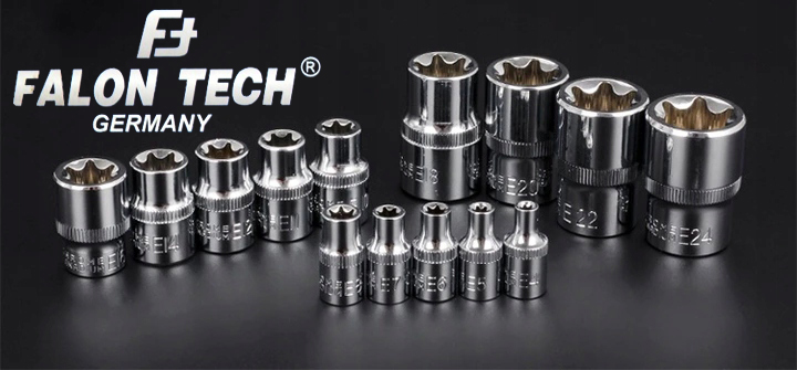 Набір головок E-TORX для 1/2", 3/8" і 1/4" від FALON ТЕХНІЧНА НІМЕЧЧИНА. Набір ретельно і точно виготовлений з високоміцної хром-ванадієвої сталі (CrV), що значно збільшує їх міцність і термін служби. Набір стане в нагоді в кожній професійній автомобільній майстерні та в домашньому гаражі. Все упаковано в зручну і міцну пластикову валізу.