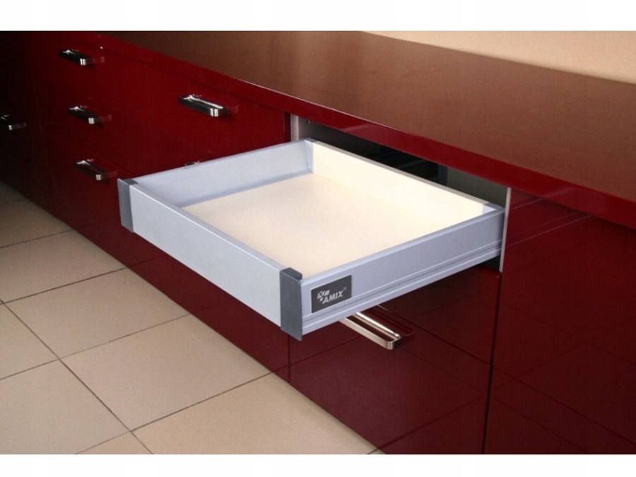вдосконалена технологія створення ящика з функцією дрімоти та спокійного закриття. Система AMIX має тиснення на металеві сторони, що спричиняє додаткове зміцнення. Якість, підтверджена сертифіктом SGS ISO9001 та довічною гарантією, запропонованою виробником. Кількість будинків у Польщі, оснащені продуктом SystemBox, обчислюється в десятках тисяч і постійно зростає.