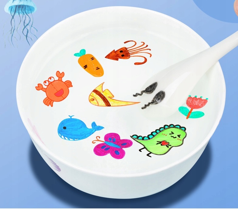 ✔️ Набір із 11 маркерів можна використовувати різними способами! Їх можна використовувати як звичайні маркери для малювання на папері чи склі, як маркери для сухостираних дощок і як чарівні маркери для створення картин, що плавають на воді! Веселощі починаються, коли ви малюєте малюнок на зворотному боці керамічної ложки, наприклад, квітку, трохи почекаєте і занурюєте її в миску з водою, і ви отримуєте остаточний ефект водного малюнку - малюнок плавно стікає по ложці хвилі, він вразить як дітей різного віку, так і дорослих.