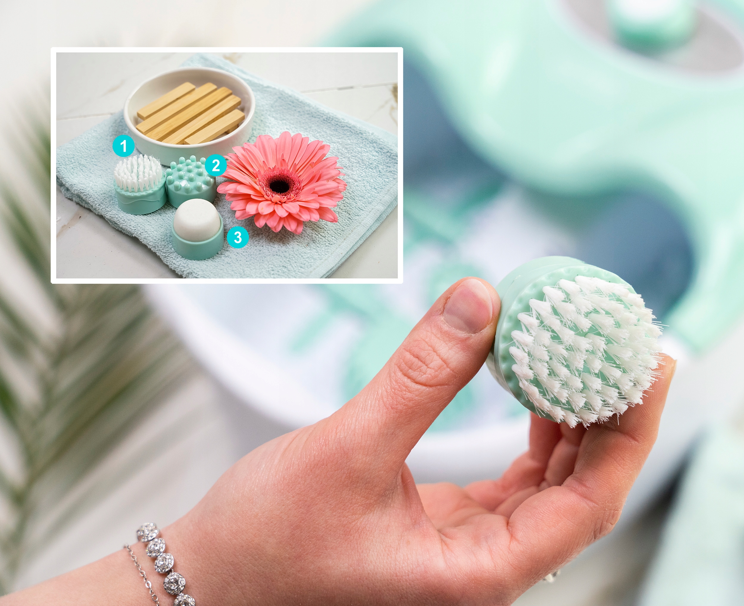Ви не тільки помасажуєте та розслабите ноги, а й подбаєте про стан своєї шкіри, завдяки спеціальним насадкам позбудетеся надлишків епідермісу, очистите та підготуєте ноги для подальшого лікування.
