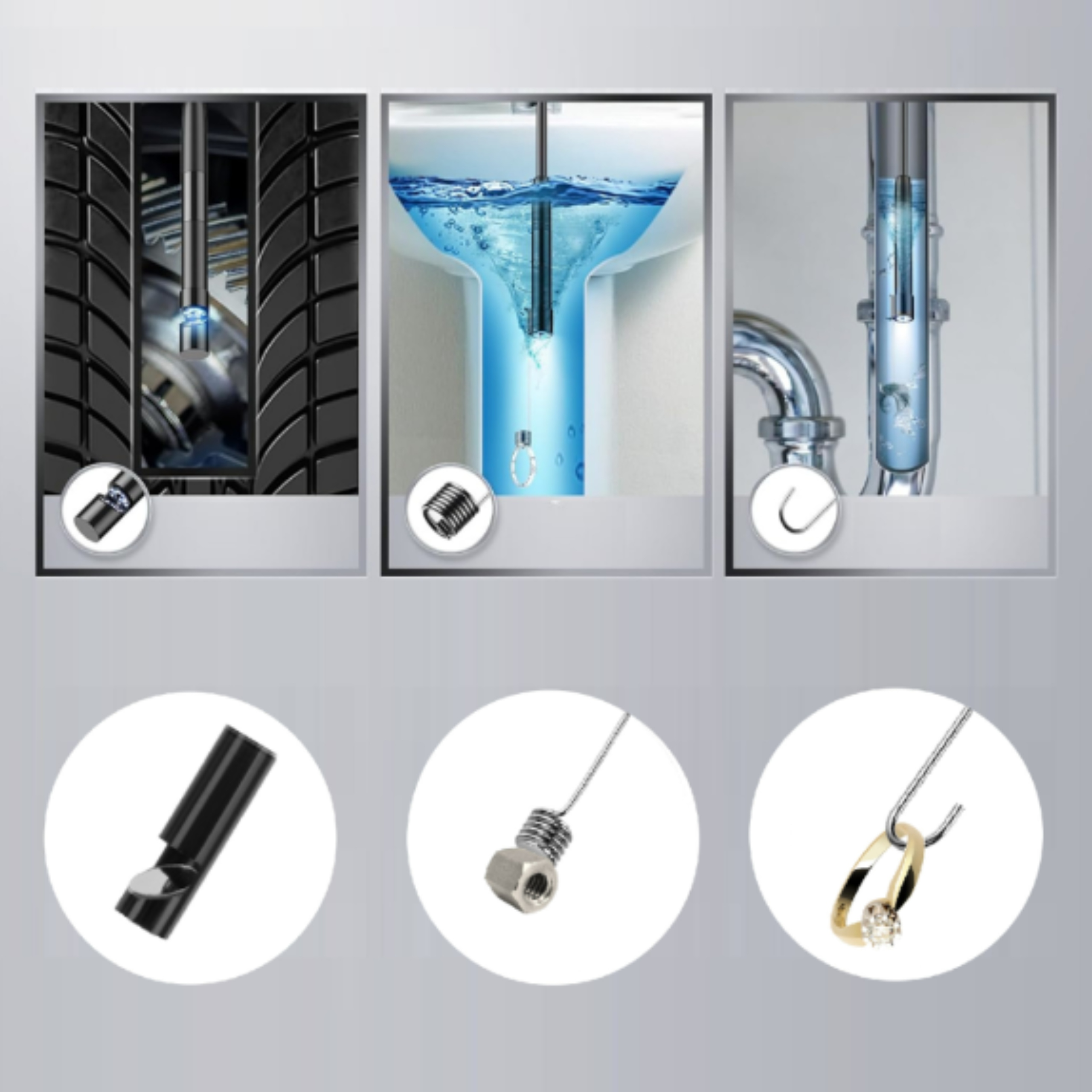 Камера розміщена на 2-метровому жорсткому кабелі з додатковими кінцями - гачком, магнітом і дзеркалом під кутом 45 градусів. Завдяки цьому ви можете легко дістатися та оглянути важкодоступні місця.