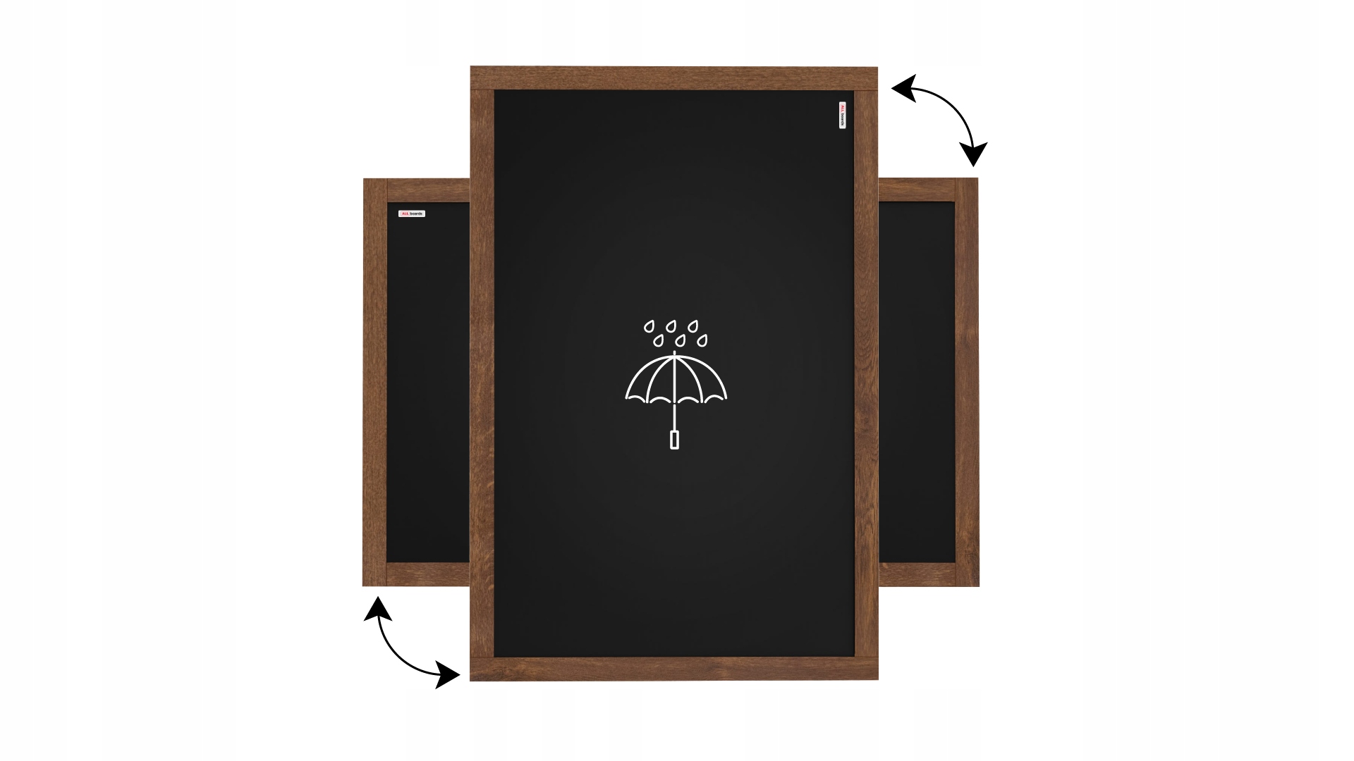 Серцем дошки є чорна дошка ABS. Він виготовлений із пластику, що робить його повністю стійким до погодних умов та можливих пошкоджень. Вам не потрібно турбуватися про дощ - ваша дошка може працювати постійно! На дошці ABS можна писати крейдою та крейдовими фломастерами.