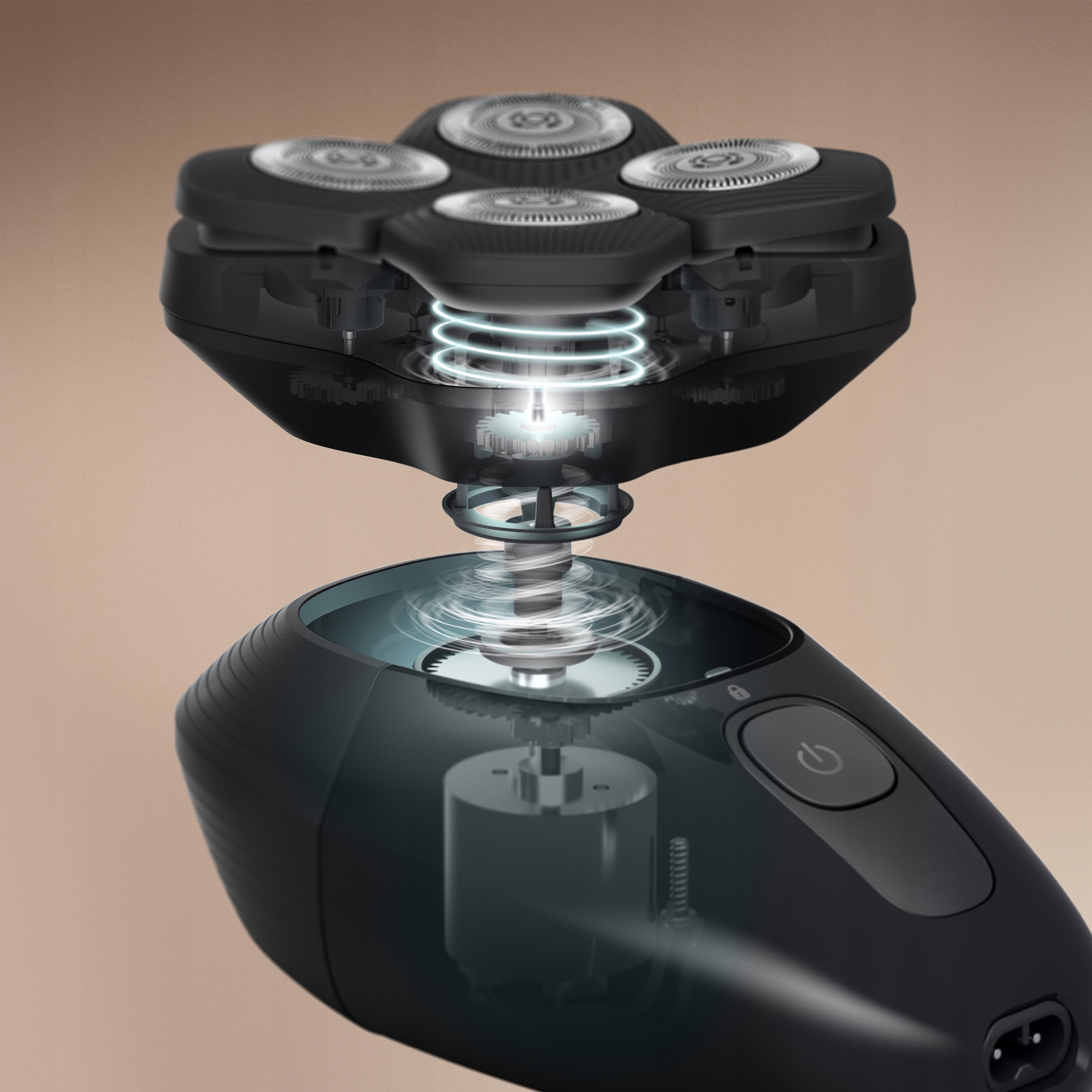 Повністю гнучка голова обертається на 360°, адаптуючись до будь-якого контуру голови. Забезпечує оптимальний контакт зі шкірою та позбавляє від необхідності багаторазового гоління в одному місці.