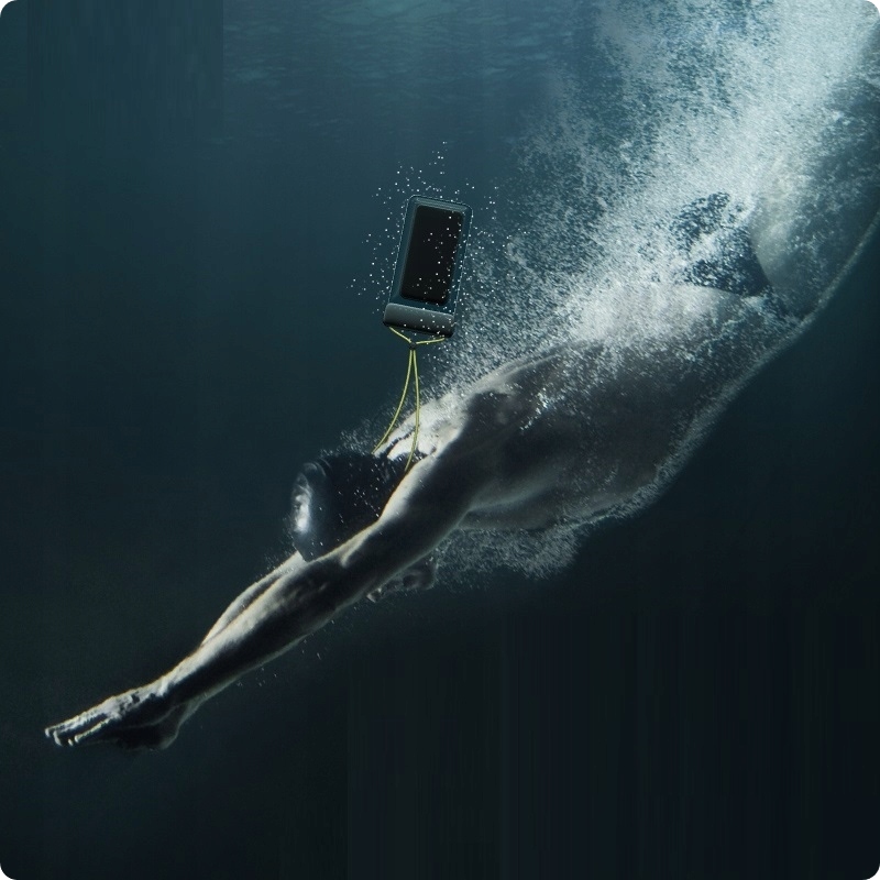 Корпус сертифікований як водонепроникний за стандартом IPX8 із 4 шарами водонепроникності, що дозволяє занурювати його у воду на глибину до 30 м. Він сумісний з телефонами з діагоналлю екрана до 7,2".