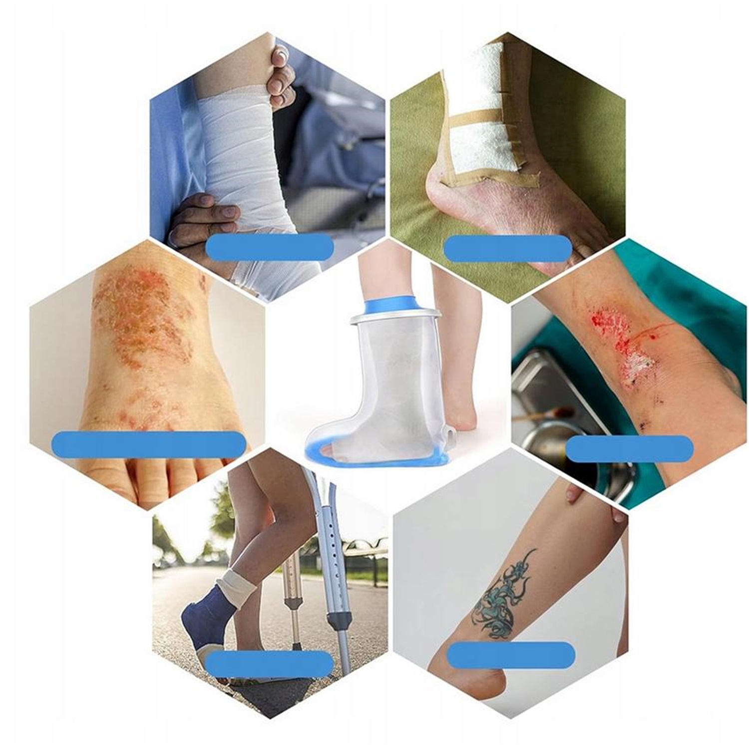 Наш водонепроникний чохол для ніг для дорослих забезпечує ефективний захист під час купання. Виготовлений з легкого, тонкого матеріалу з силіконовим ущільнювачем, він запобігає потраплянню води всередину, зберігаючи гіпсові пов’язки сухими та запобігаючи інфікуванням ран.