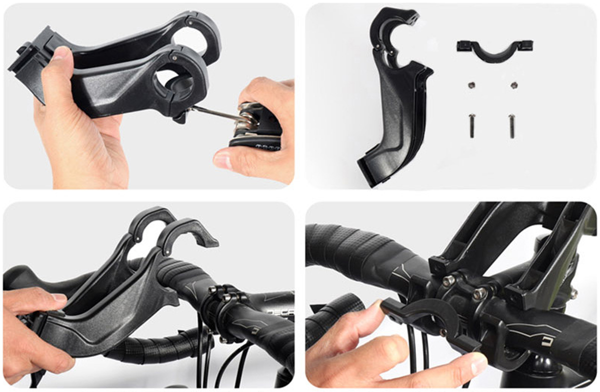 Сумку можна встановити завдяки спеціальному оголів'ю, яке кріпиться на кермо нашого велосипеда. Мінімальний діаметр керма 3 см. Після встановлення наголів’я просто вставте сумку за допомогою кліпси.