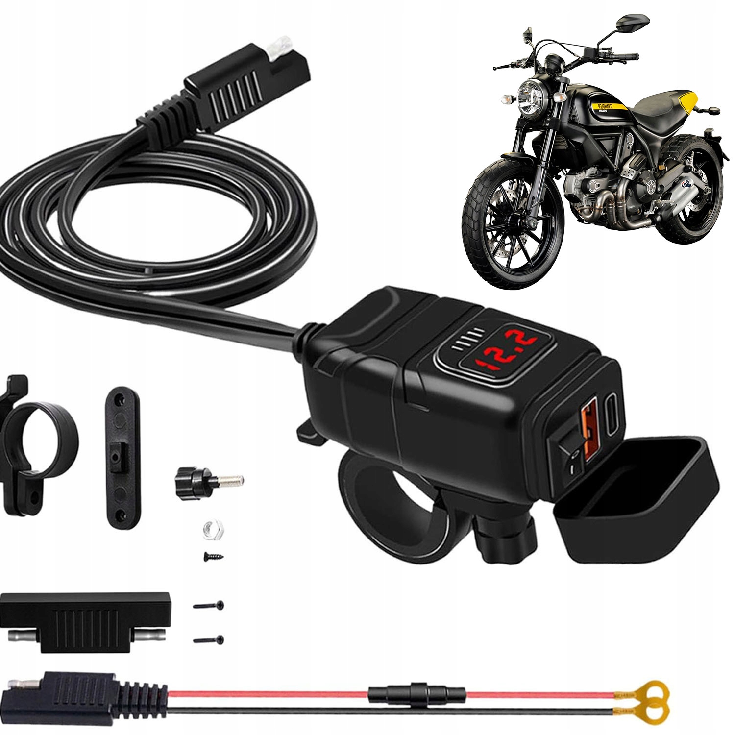 ✨ Зарядний пристрій для мотоцикла PD+QC3.0 30 Вт USB-C+A зі світлодіодним вольтметром. Водонепроникний, 12-24 В, швидка зарядка та безпечне встановлення.