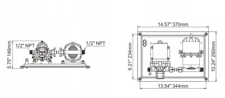 ВОДЯНИЙ НАСОС НА ТИСК 12 В 11,3 л/хв + РОЗШИРЮВАЛЬНИЙ БАК - Повний набір тиску складається з 3-камерного мембранного напірного насоса, сітчастого фільтра та напірного бака з електричними швидкими з’єднувачами. Насос, розширювальний бак і електричні клеми розташовані на монтажній пластині. Перевагою цього рішення є стабільний тиск і підвищена ефективність самовсмоктування. Завдяки цьому комплекту достатньо для живлення 3-х і більше водоприймачів. Насос включається автоматично в результаті падіння тиску (відкриття крана).