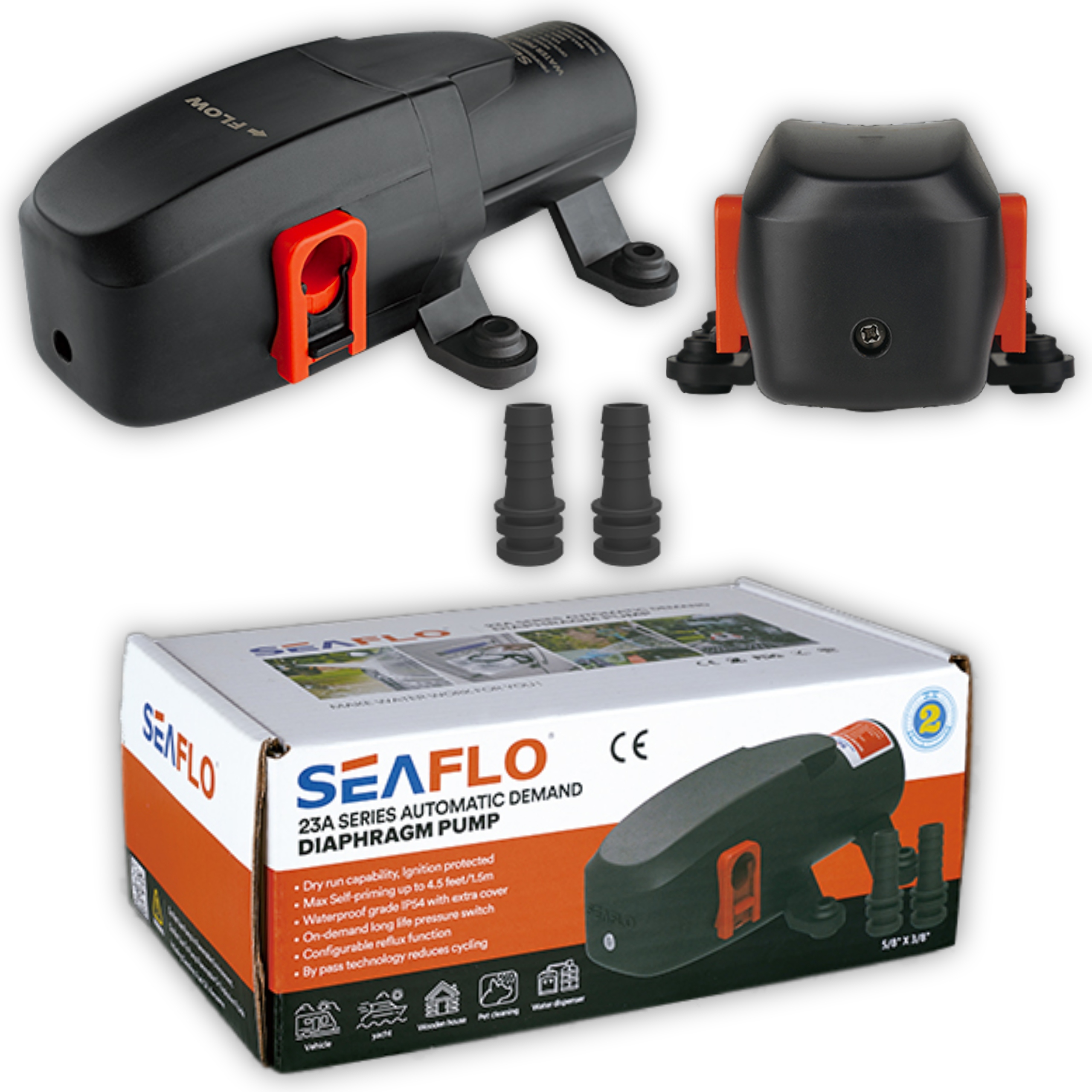 Напірний насос SEAFLO SFDP2-015-040-23A до сучасний, компактний пристрій серії 23, призначений для живлення кранів, душових кабін і водяних установок у човнах, яхтах, трейлерах і кемперах.