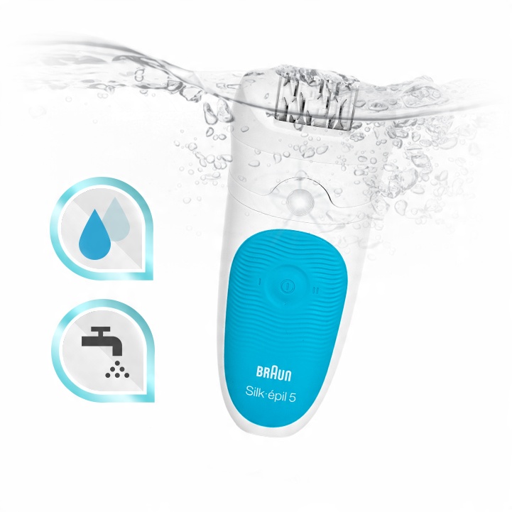 Ви можете зручно користуватися епілятором Silk-épil 5 у ванні чи душі. Тепла вода виділяє ендорфіни - природний болезаспокійливий засіб, що виділяється організмом людини. Зменшує дискомфорт і подразнення шкіри. При регулярному використанні видалення волосся стає практично безболісним.