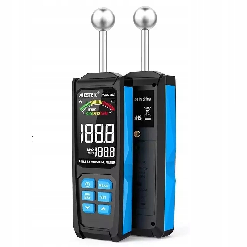 - Ідеально підходить для перевірки вологості деревини та будівельних матеріалів, таких як стінові дошки, шифер, плитка, картон, штукатурка, бетон і розчин, як а також для ремонту витоків, перевірки вологості стін спальні, плитки на підлозі чи вагончиків тощо.