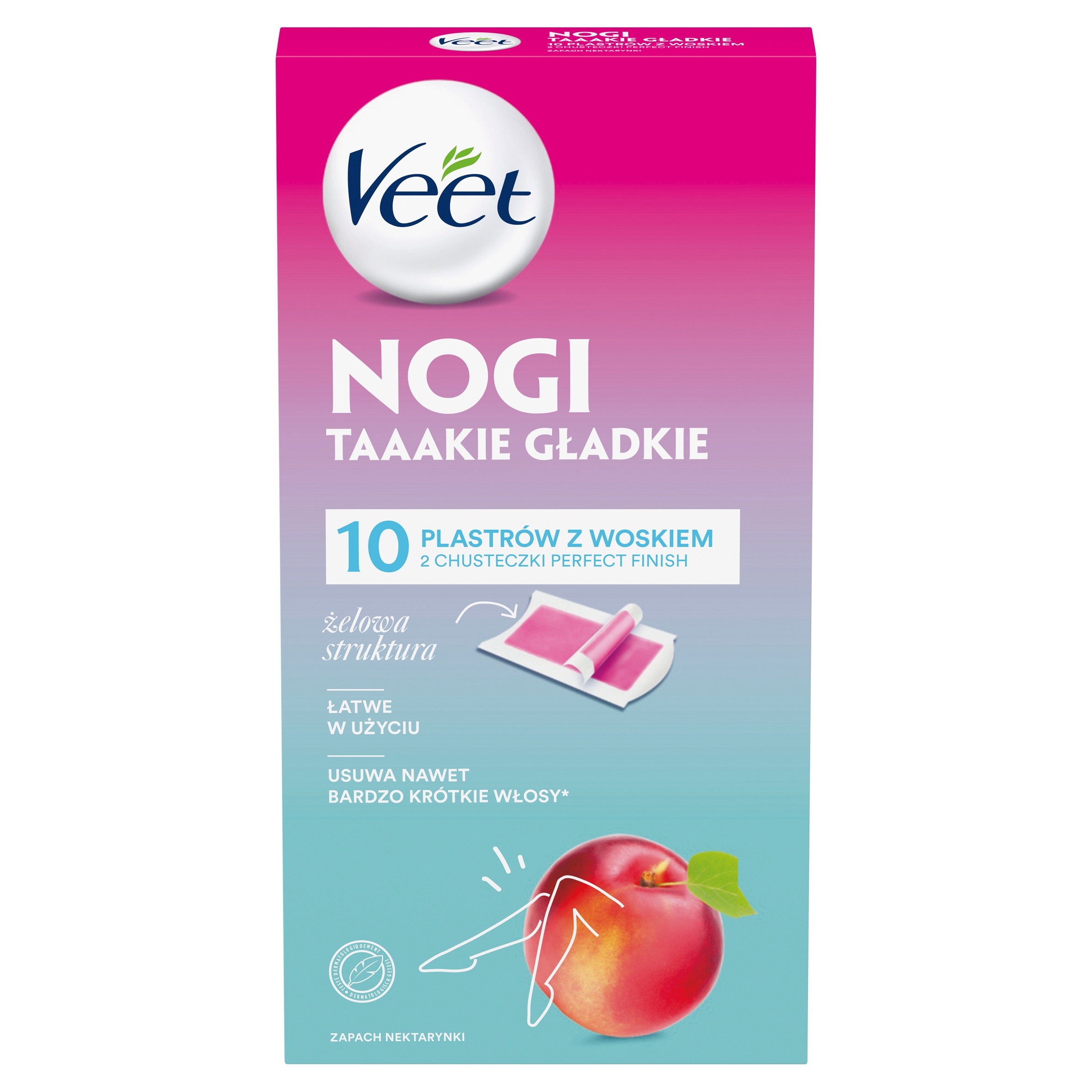 Veet So Smooth Nectarine, 10 шт., Видалення та епіляція для жінок Ваші ноги та інші частини тіла можуть бути ідеально гладкими навіть без регулярних відвідувань салону краси. Віск для епіляції Veet So Smooth Nectarine видаляє небажане волосся буквально одним рухом, під час якого вириває волосся разом з коренем. Завдяки цьому ваша шкіра залишається гладкою та без волосся довше, ніж після використання звичайної бритви. Ніякого небажаного волосся, частого гоління! Властивості: видаляє волоски з коренем, ідеально прилягає до волосків, а після використання шкіра залишається гладкою до кількох тижнів. Спосіб застосування: розігрійте воскову смужку, потерши її руками. Прикладіть смужку до шкіри, розгладьте її, а потім швидким рухом відірвіть смужку. Видаліть залишки воску зі шкіри невеликою кількістю масла.