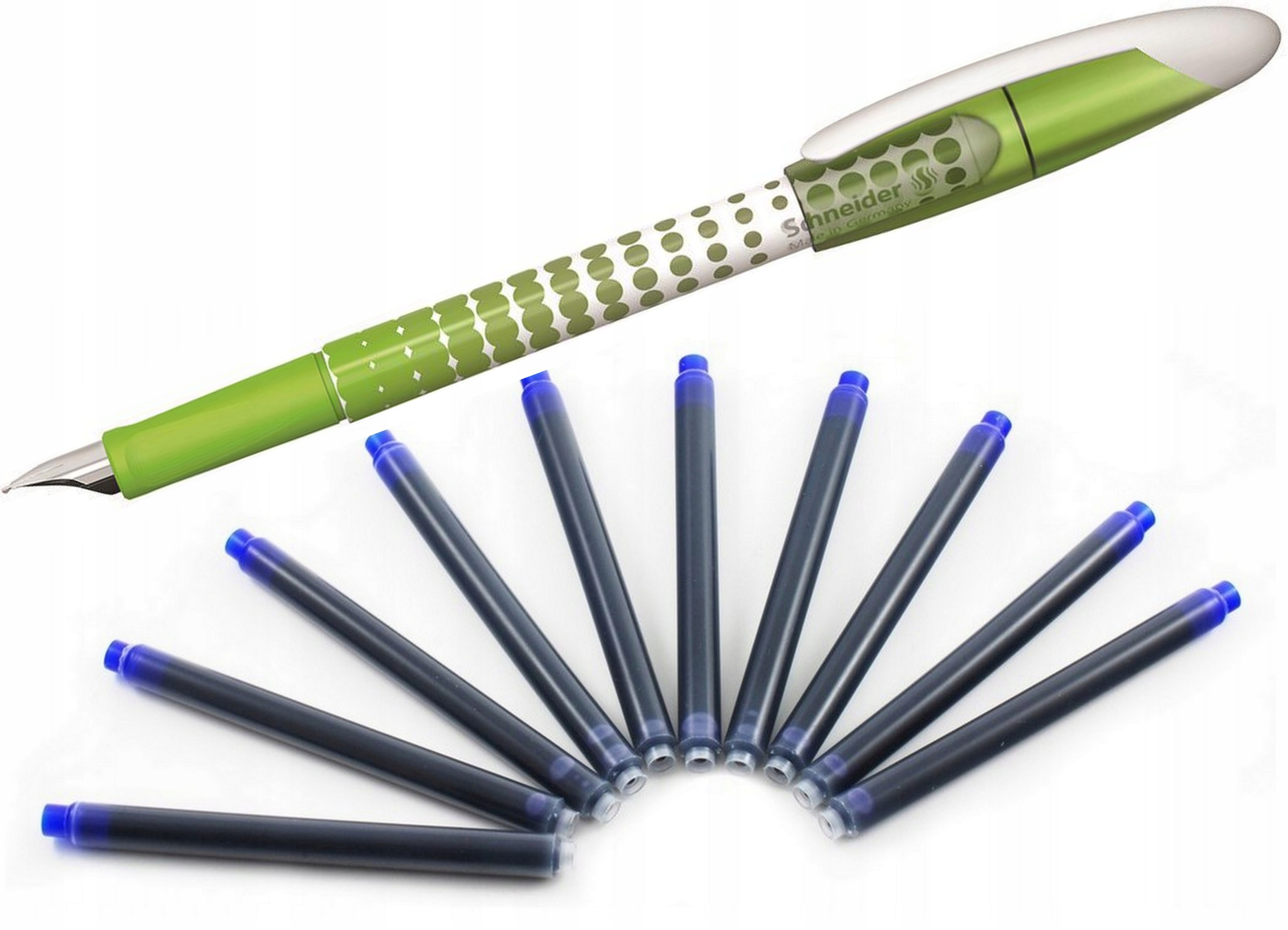 ПЕРОВА РУЧКА З ПРОФІЛЬОВАНОЮ ЕРГОНОМІЧНОЮ РУЧКОЮ SCHNEIDER + 10 ДОВГИХ СИНІХ КАРТРИДЖІВ