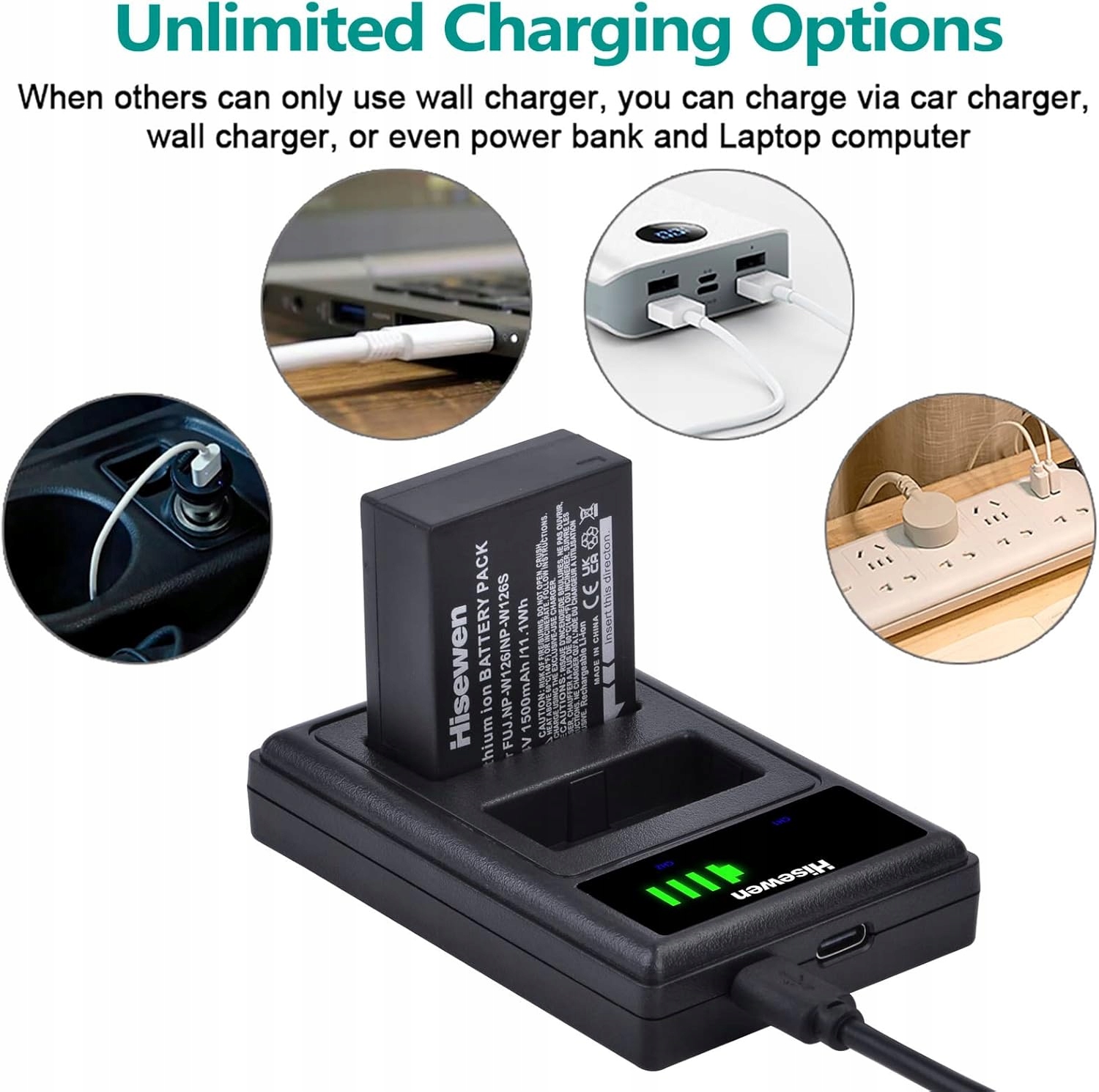 A set of two batteries Hisewen NP-W126 with a capacity 1500mAh will provide longer working time for cameras Fujifilm X-T30 II, X-S10, X-Pro3, X-Pro2, X-Pro1, X-T30, X-T20, x-t X-T10, X-T3, X-T2, X100V, X100F, X-E4, X-E3, X-E2, X-E1, X-A5, X-A3, X-A2 . Набір включає USB -зарядний пристрій з двома каналами, що дозволяє одночасно заряджати дві батареї.