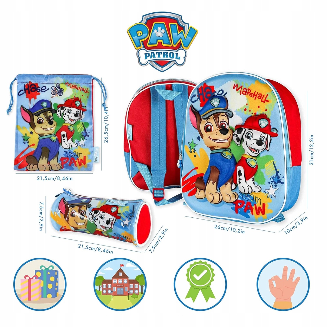 3D SchoolSort, струнна сумка, справа з олівцем - PAW Patrol | Шкільний мішок для хлопчиків та дівчат з 3 -річної шкільної сумки з рюкзаком, сумкою для обіду, справою олівця повернутися до школи з патрульним лапою