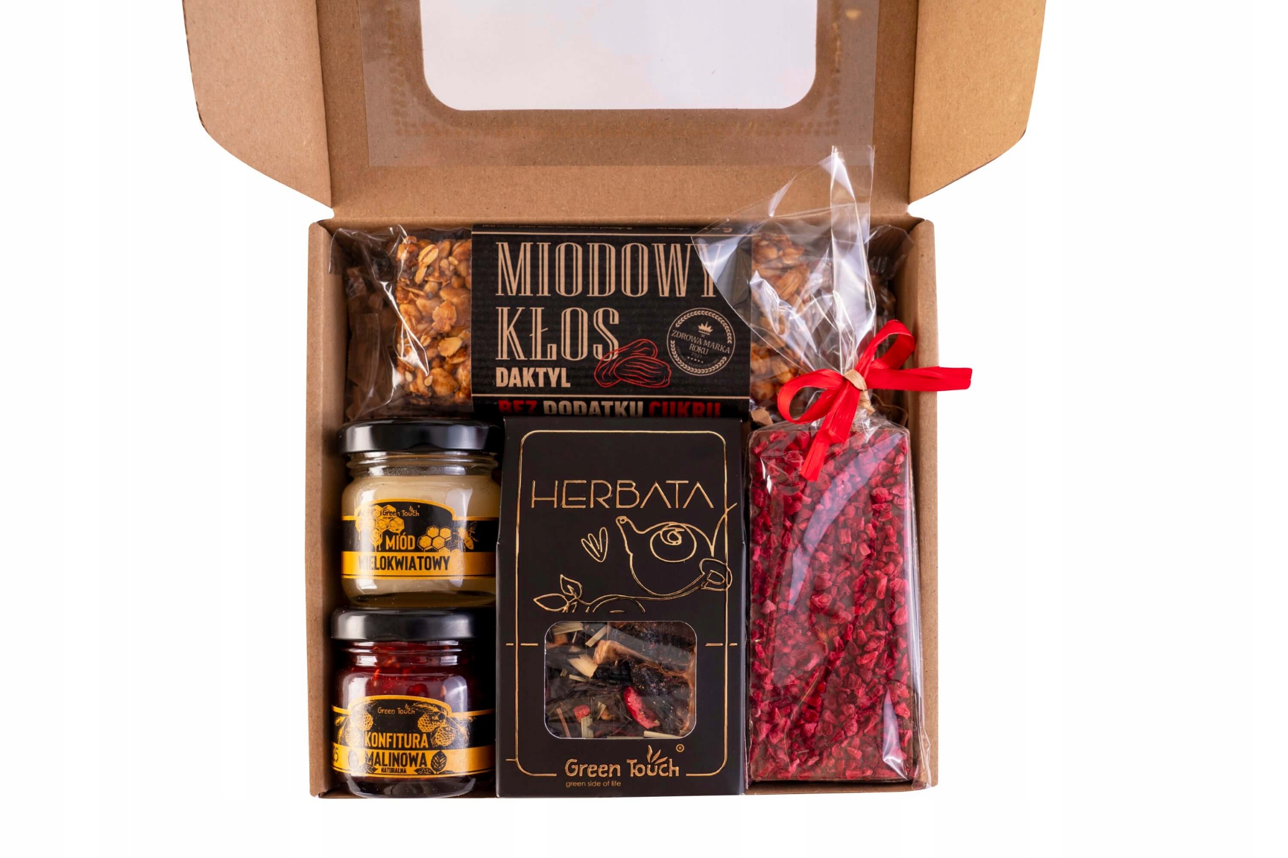 Подарунковий набір чай мед малинове варення шоколад медовий батончик