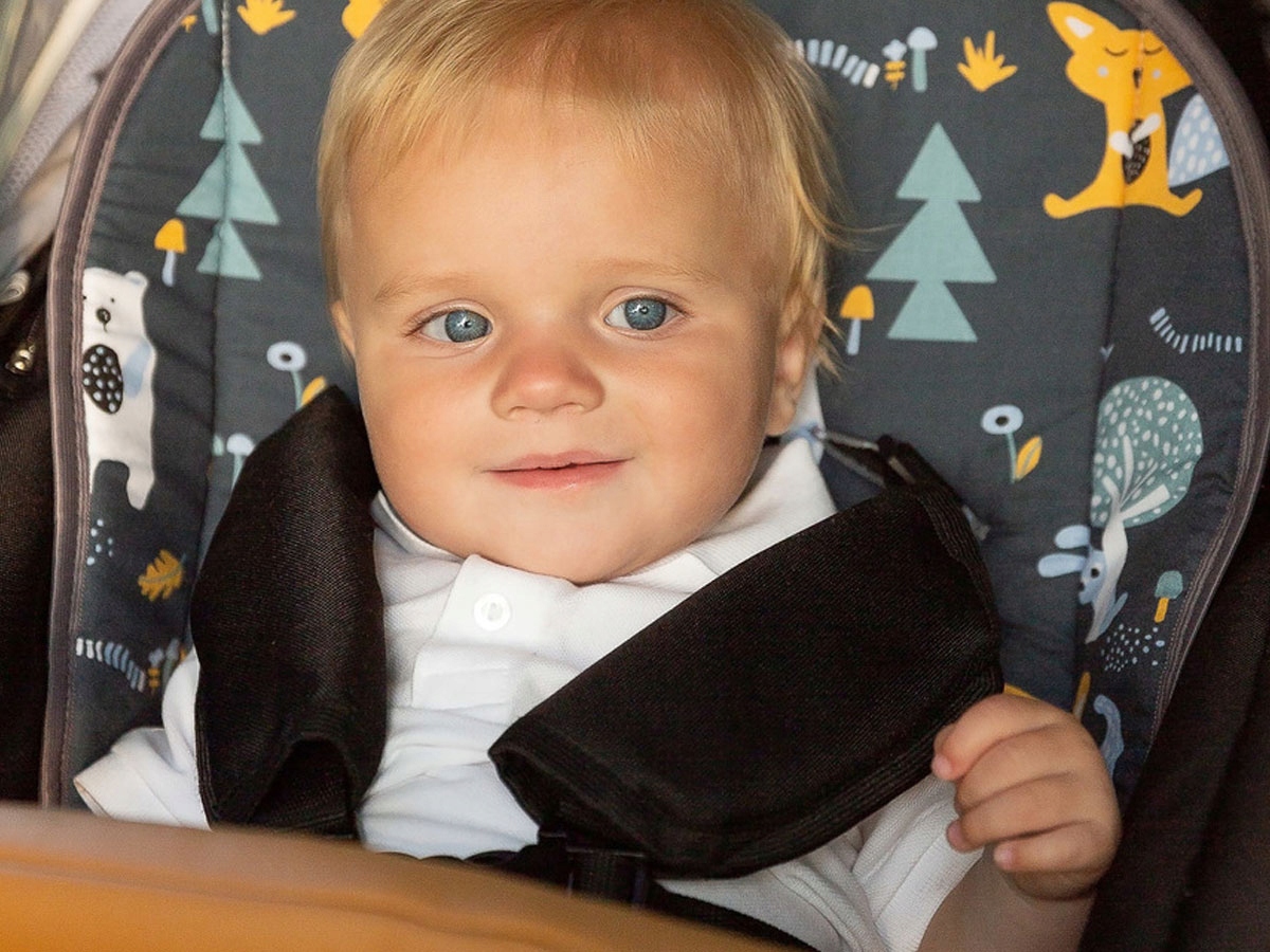 - Універсальне розташування прорізів для ременів, що дозволяє легко підлаштувати вставку під різні типи колясок