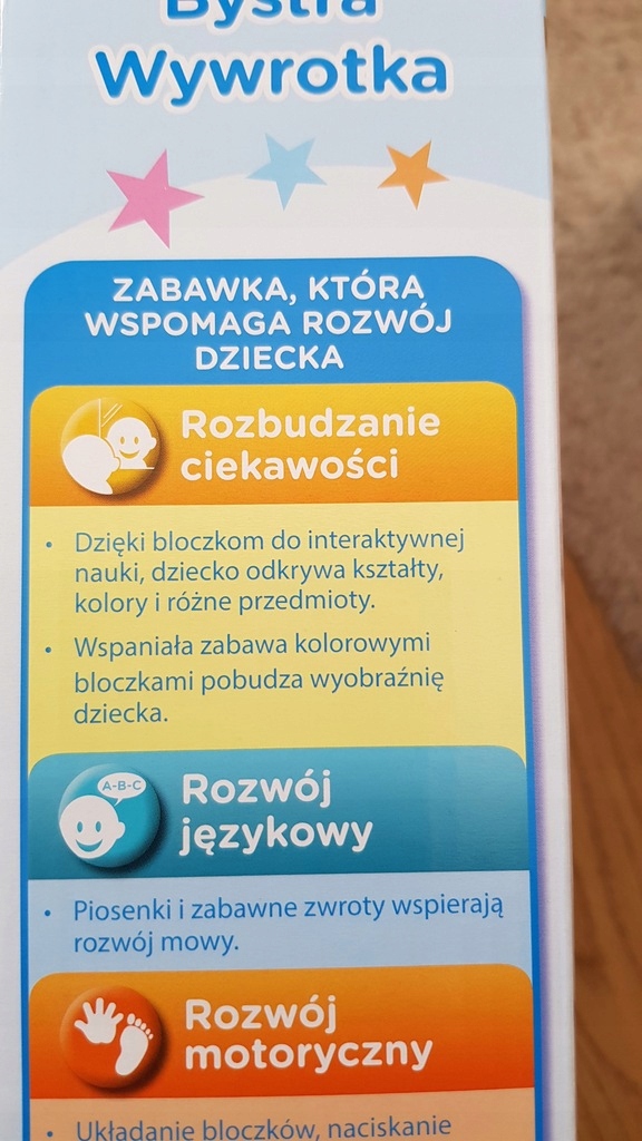 - Покладіть барвистий блок у спеціальний отвір наконечника, щоб почути імена кольорів і форм та смішні фрази