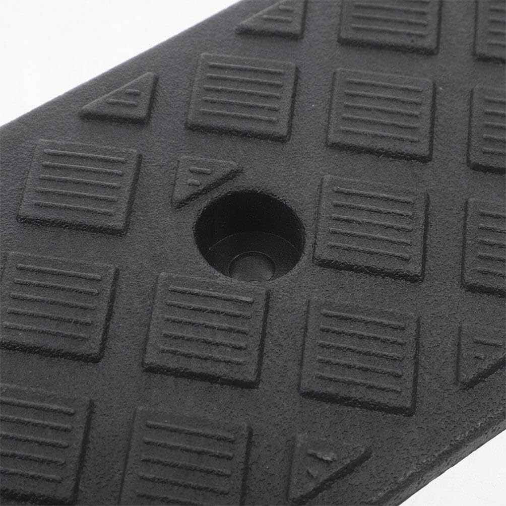 Рампа має спеціальний кріпильний отвір, який дозволяє назавжди прикріпити його до землі з гвинтами або якорями розширення. Це запобігає ковзанню пандусу під час використання, підвищення стабільності та безпеки - особливо в місцях з великим рухом або при частому переїзді транспортного засобу. Ідеальне рішення для постійної установки на бордюрах, конвенціях та порогах.