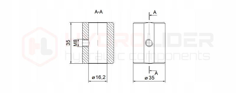 ВТУЛКА ВУХА 16X35X35 ШТОК ПОРШНЯ ГІДРОЦИЛІНДРА ЦИЛІНДРА ГІДРОЛІДЕРА