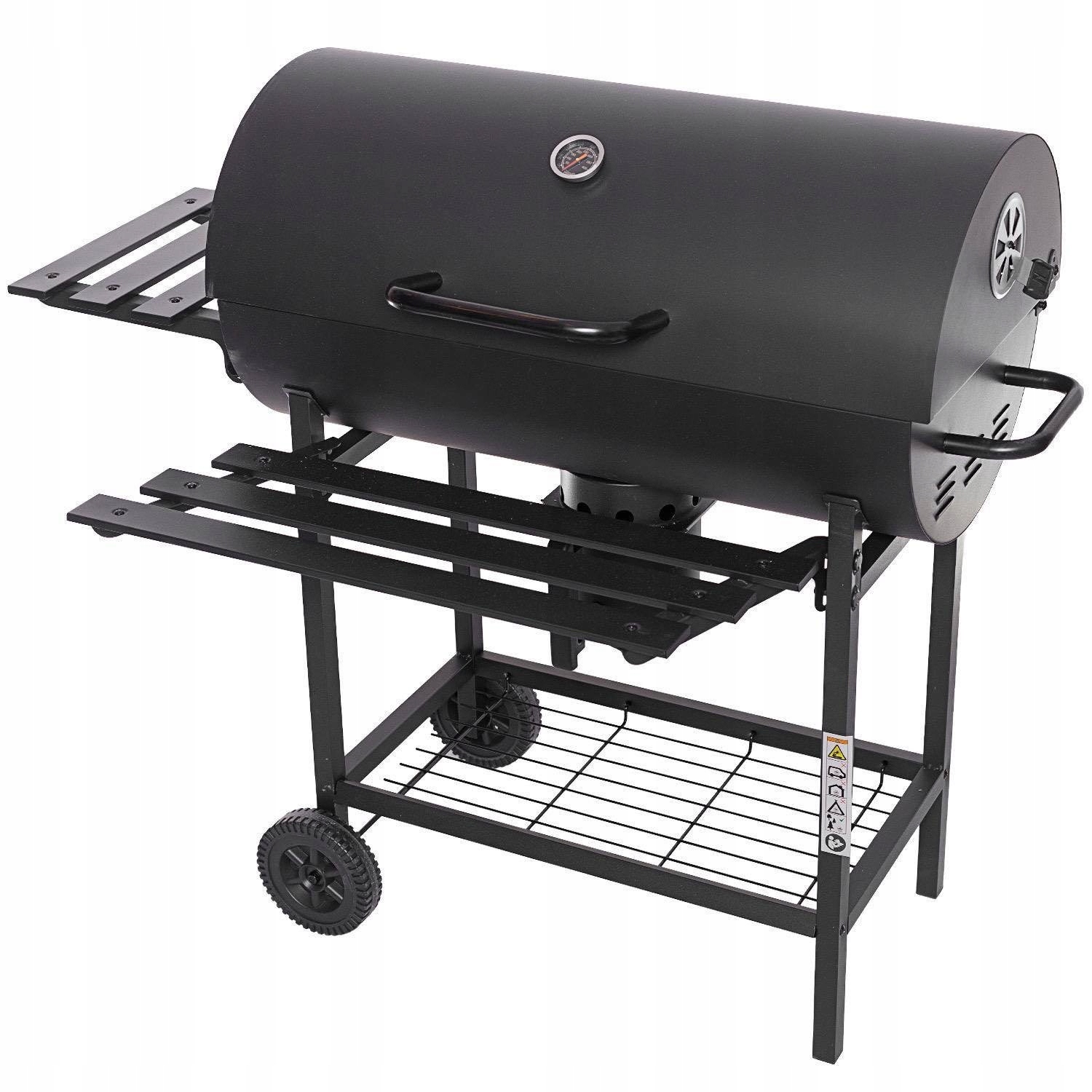 садовий гриль вуглецевий гриль Професійний вугільний гриль - це справжнє відчуття з багатьма розумними аксесуарами. Тож гриль - це справді весело! Складена сторона і передня полиця. Гриль має термометр. Вугільний гриль також має надзвичайно велику нагрівальну поверхню. Капуль з грилем та пожежною мискою виготовлені з розфарбованої порошком сталі, а нержавіюча сталь на грилі на грилі, полиця гарячої штанги, виготовлена з хрому. Контейнер для рослини має контейнер під деревним вугіллям. Таким чином, очищення гриля дуже просто. Ще одна атракція - це 2 колеса, які забезпечують легкий транспорт та нижчу практичну сітку для зберігання.